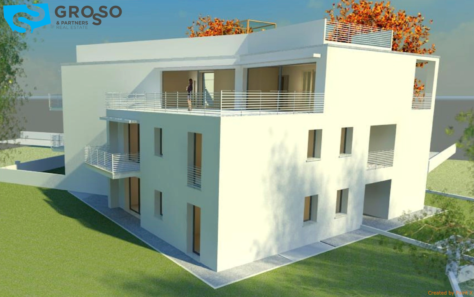 Attico su due livelli con travi a vista nel superattico, finiture moderne ed eleganti con pavimenti in legno, composto da soggiorno di mq 45 con cottura divisibile, 3 camere, 2 bagni, scala per accedere al superattico composto da sala di mq 30 dove è possibile ricavare un altro soggiorno, terrazzo panoramico di mq 70, riscaldamento e raffrescamento a pavimento, garage doppio classe energetica A