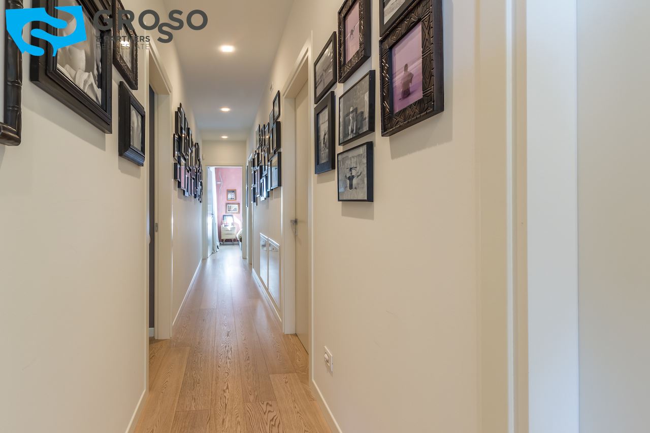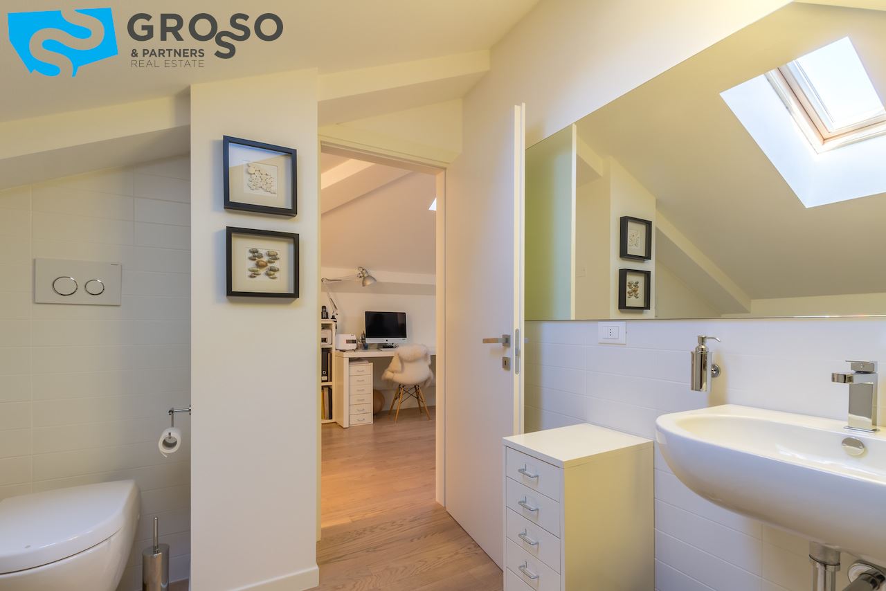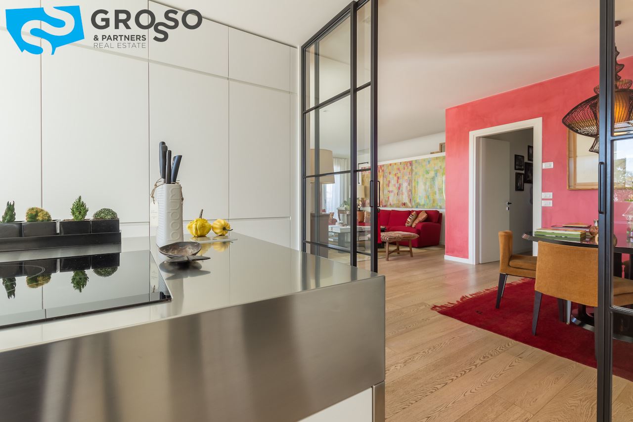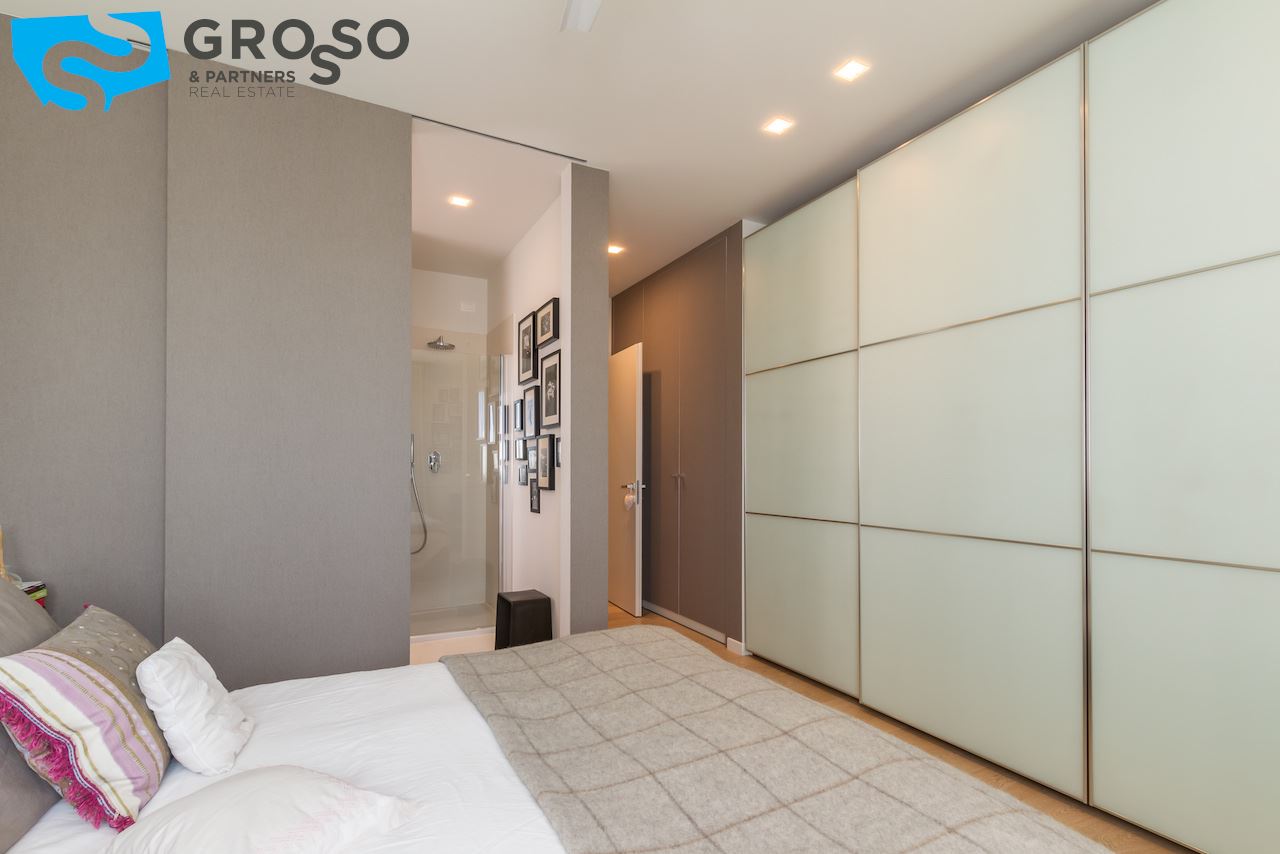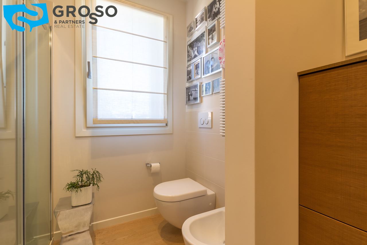 Ripostiglio nel sottoscala, impianto aria condizionata, impianto sistema allarme, magazzino al piano terra, garage doppio in larghezza, due posti auto esterni, riscaldamento a pavimento, giardino condominiale, ascensore in casa con porta blindata.