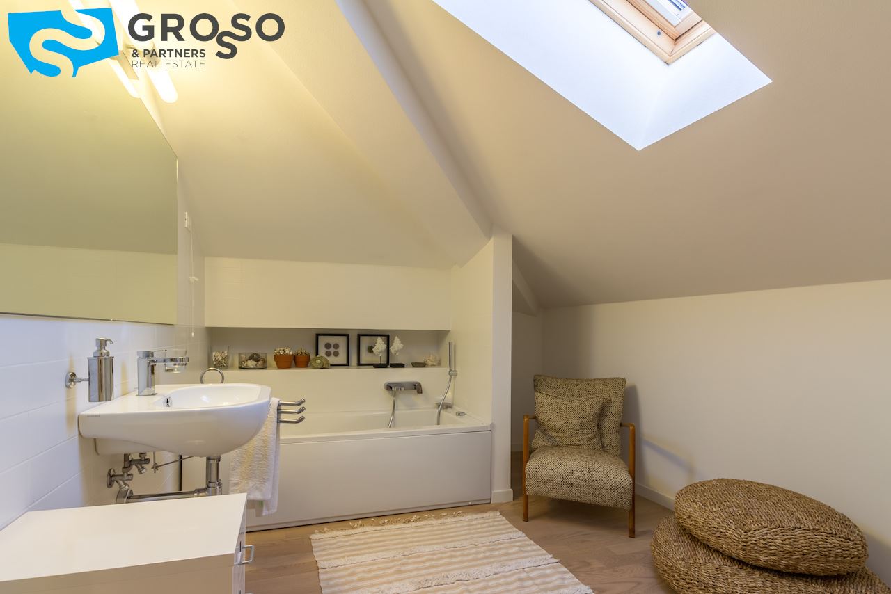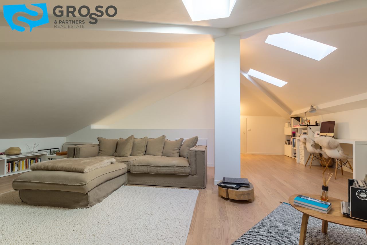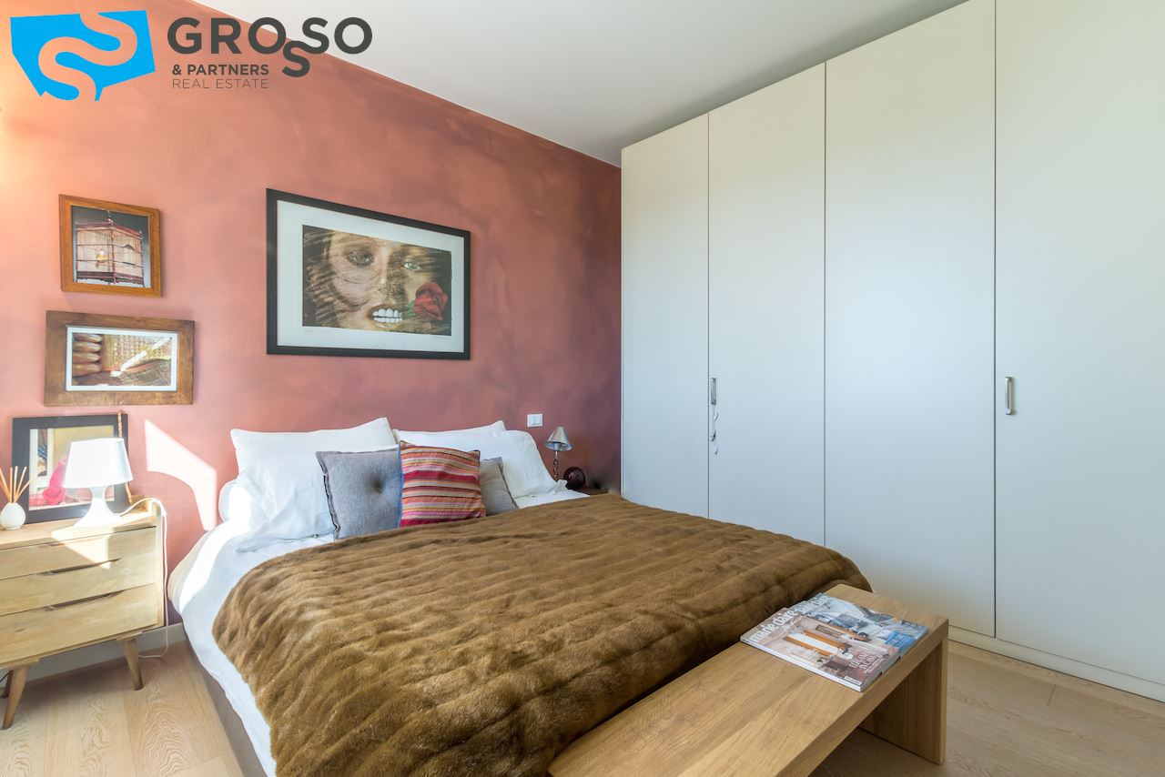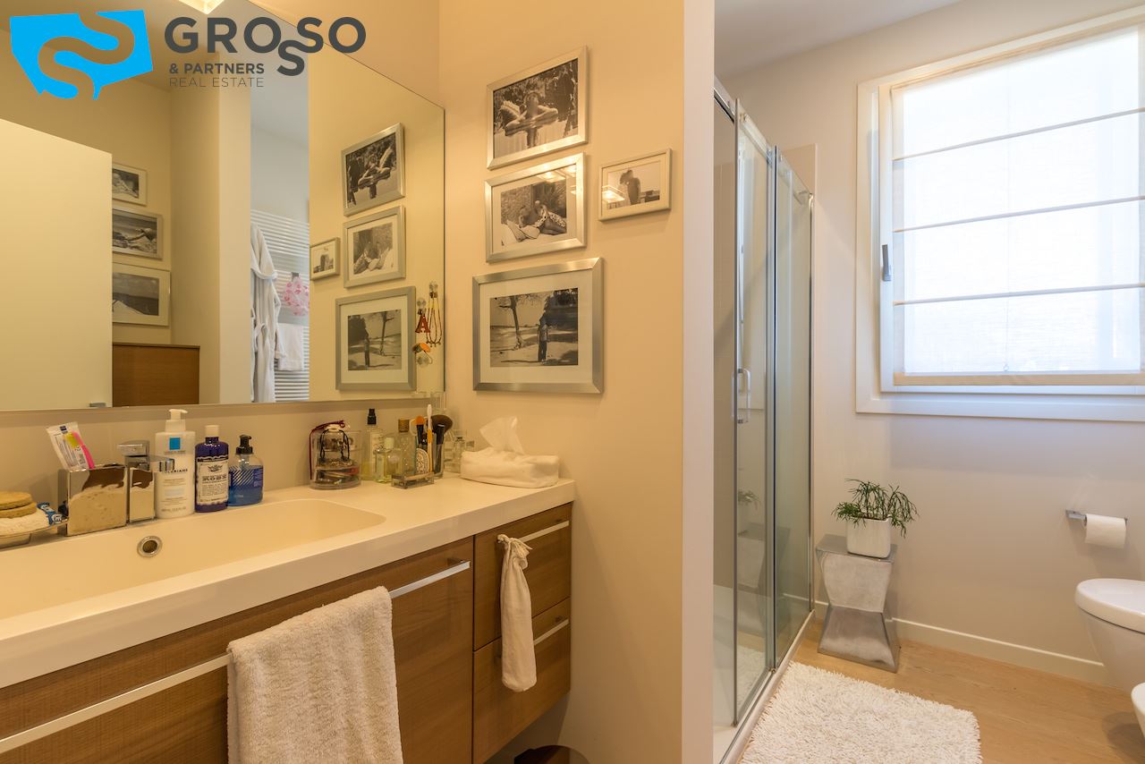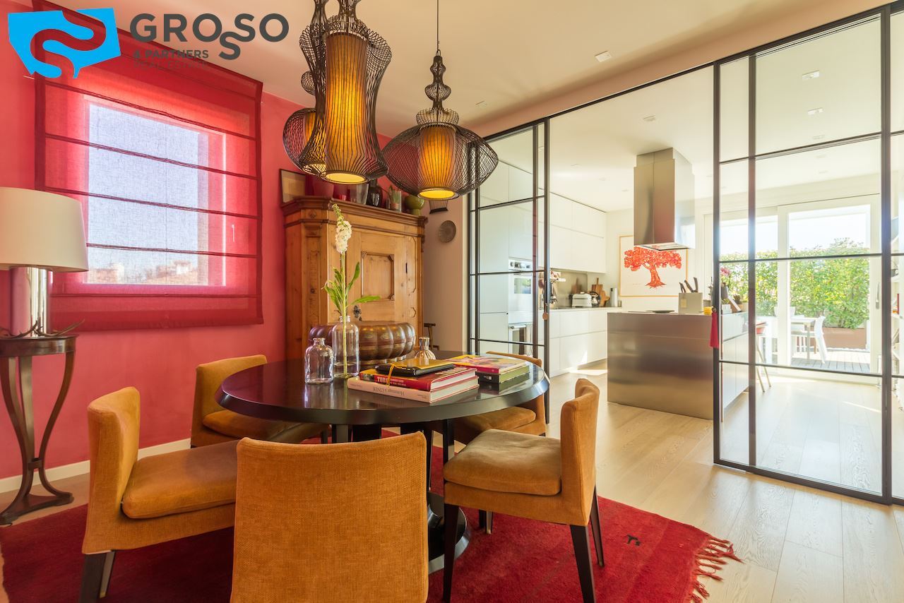 Ripostiglio nel sottoscala, impianto aria condizionata, impianto sistema allarme, magazzino al piano terra, garage doppio in larghezza, due posti auto esterni, riscaldamento a pavimento, giardino condominiale, ascensore in casa con porta blindata.