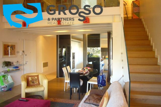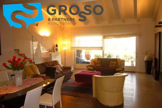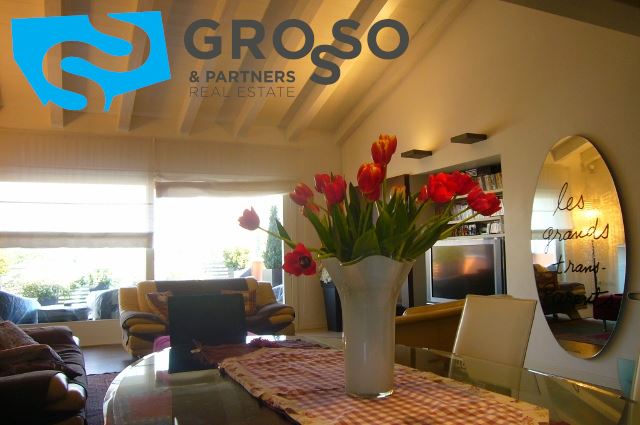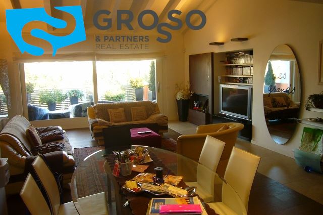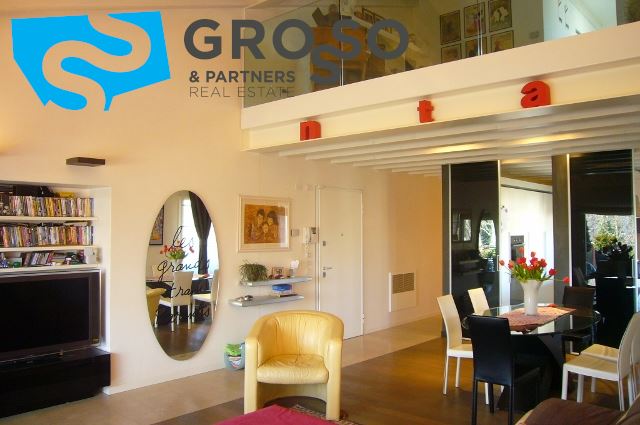 La zona giorno risulta essere piacevolmente funzionale grazie agli oltre 40 mq di soggiorno con caminetto, che sfoga sul primo terrazzo abitabile da mq 22; degno particolare la travatura a vista ed il soppalco che fa intravvedere lo studio.