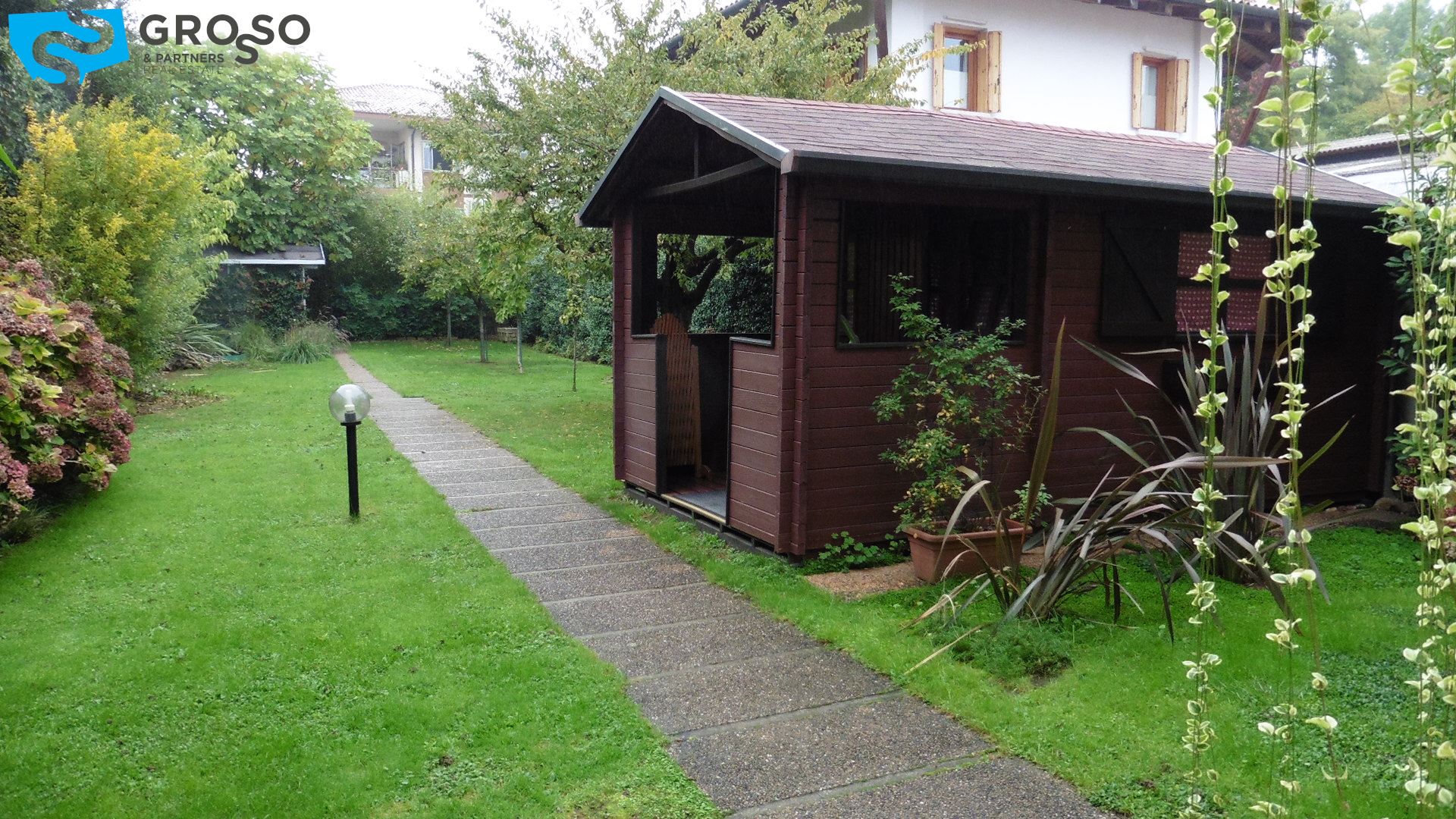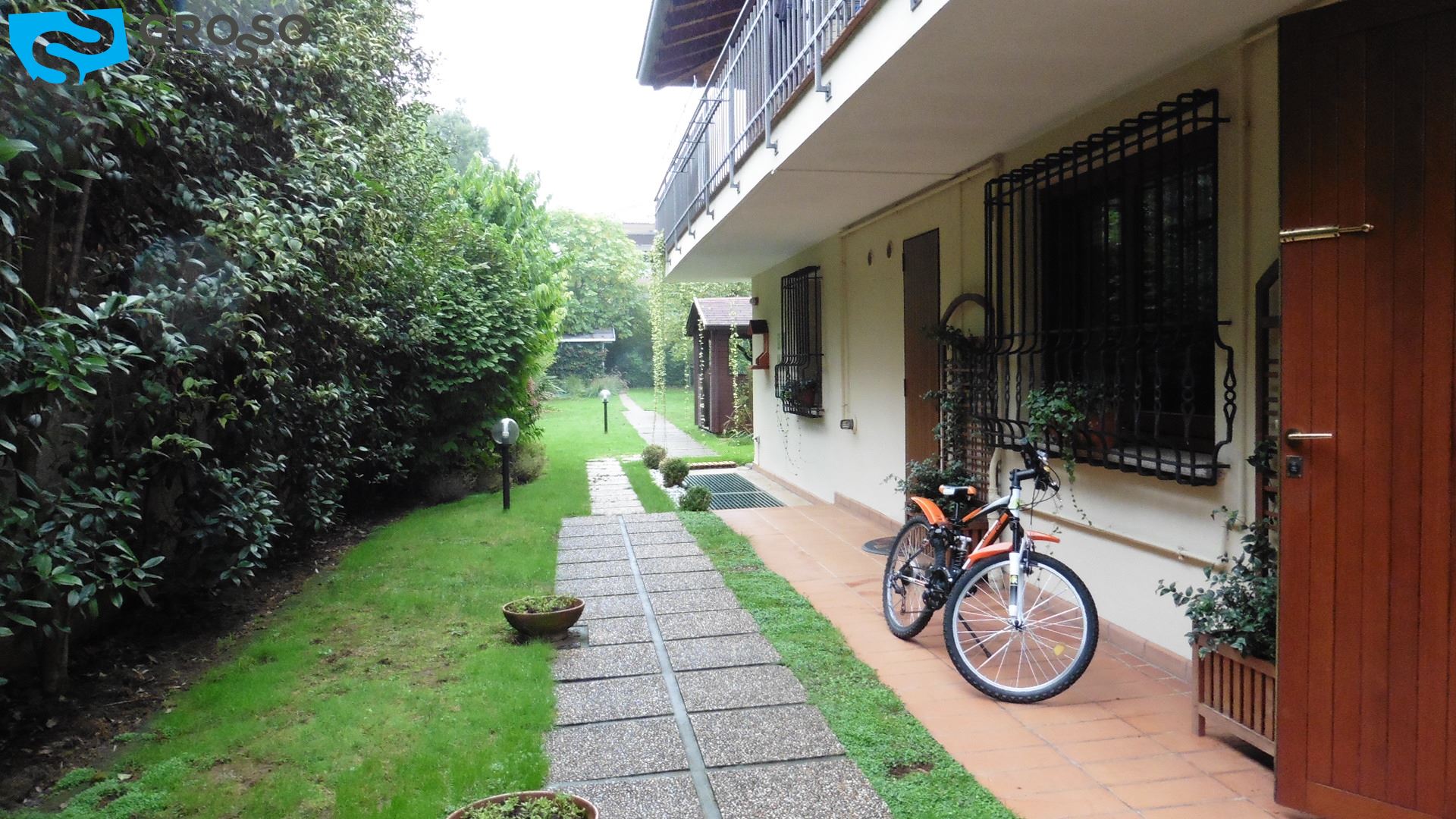 In centro a Montebelluna, in posizione centralissima ma molto riservata e tranquilla, porzione di casa disposta su due livelli con giardino di proprietà ben piantumato di mq 290 circa. Al piano terra si sviluppa per una superficie di circa 100 mq attualmente adibiti a tavarna/salotto/ cuicna separata, un bagno, al piano interrato, collegato dall'interno, garage doppio in larghezza, al primo piano altri mq 100 con cucina abitabile (o terza camera), due camere da letto e altro bagno. terrazzo perimetrale.