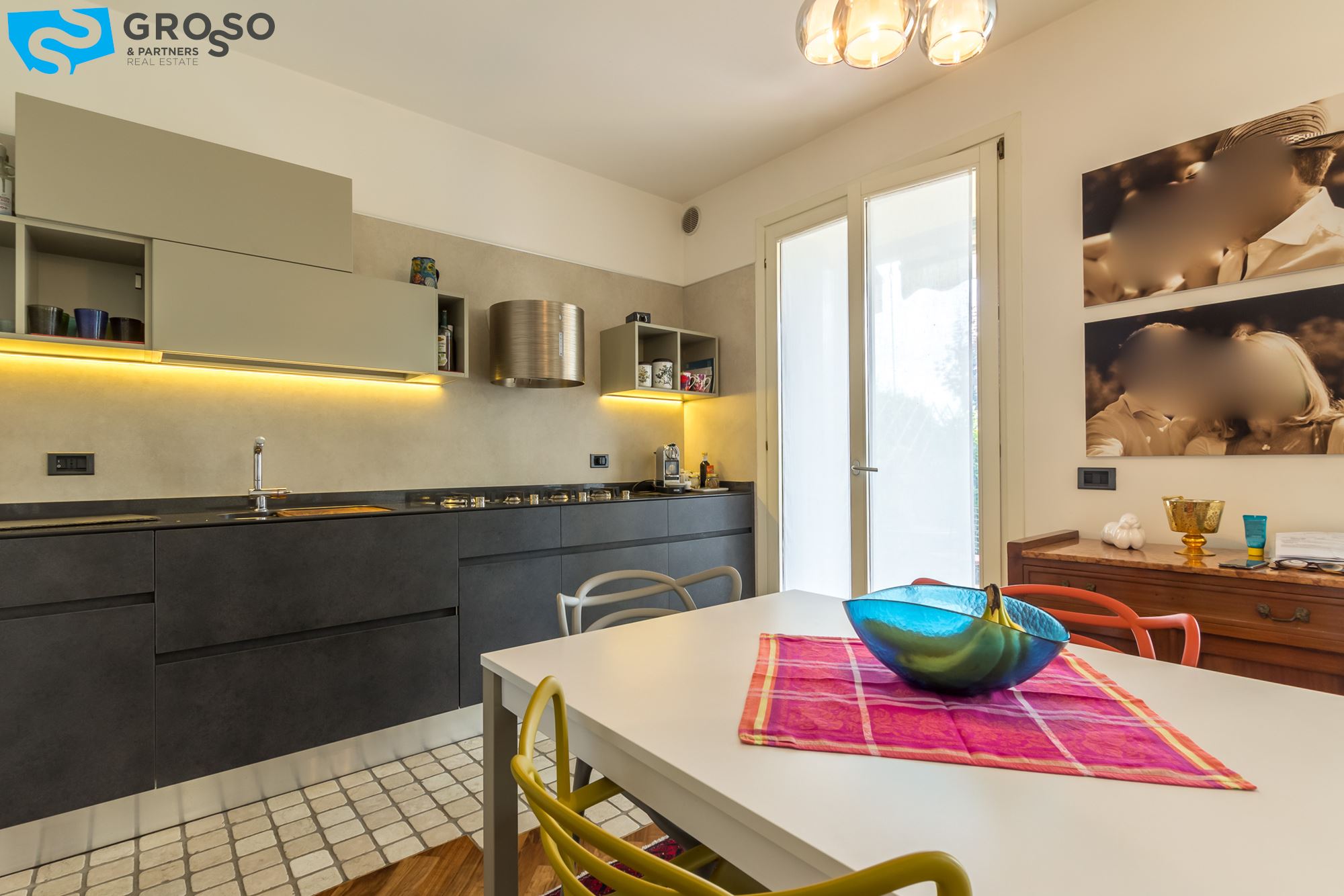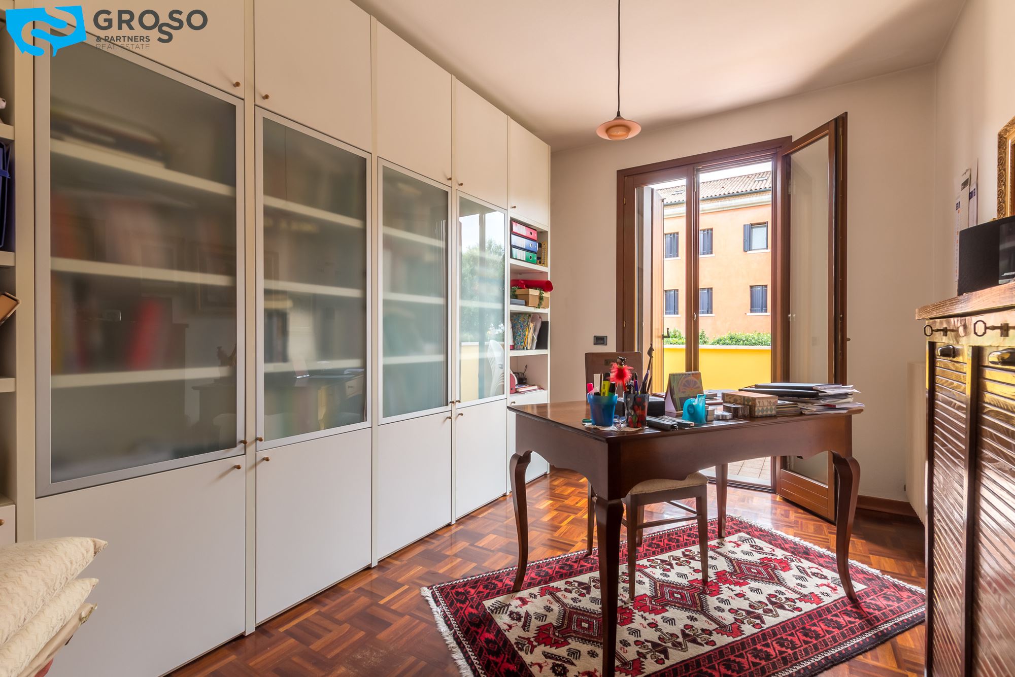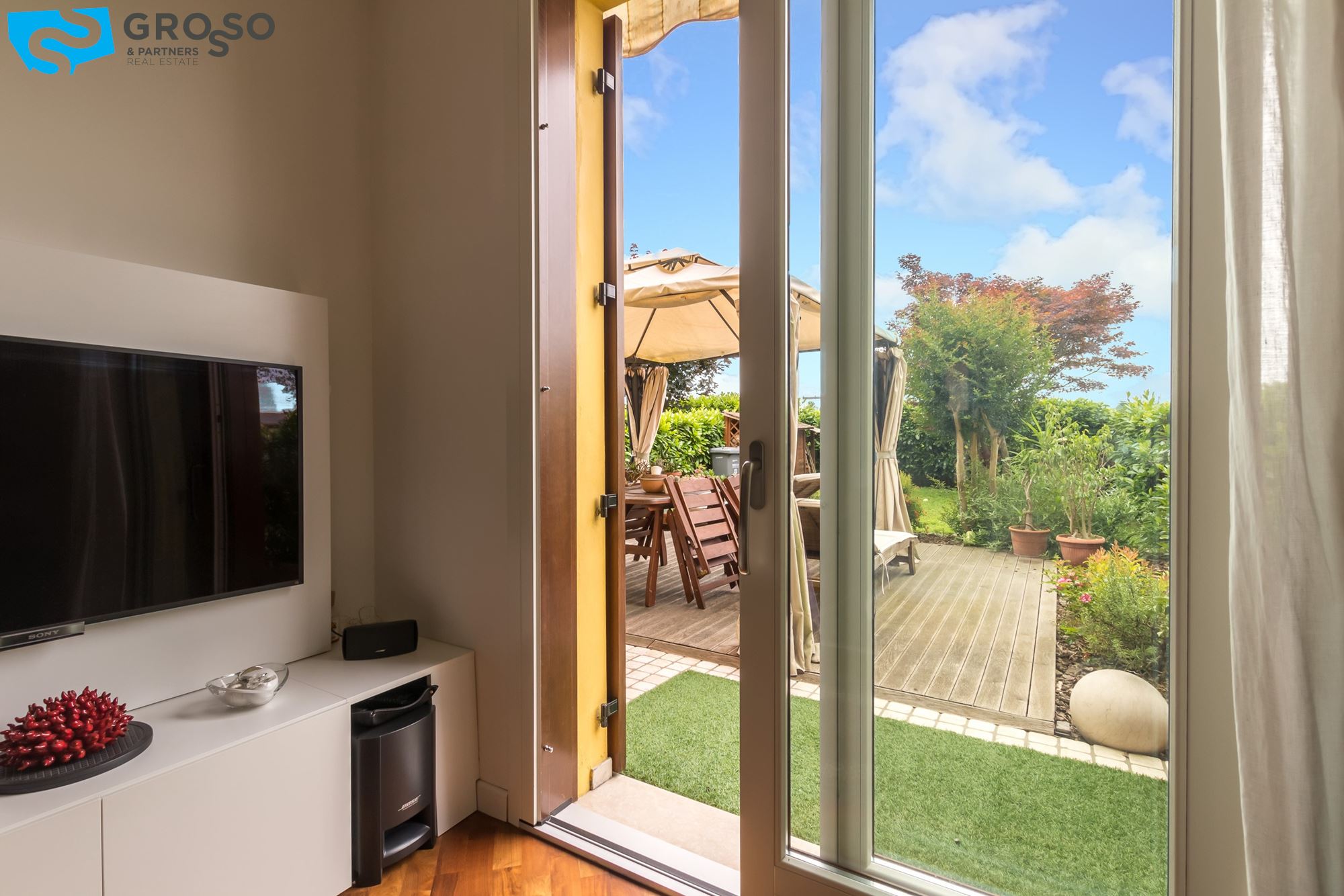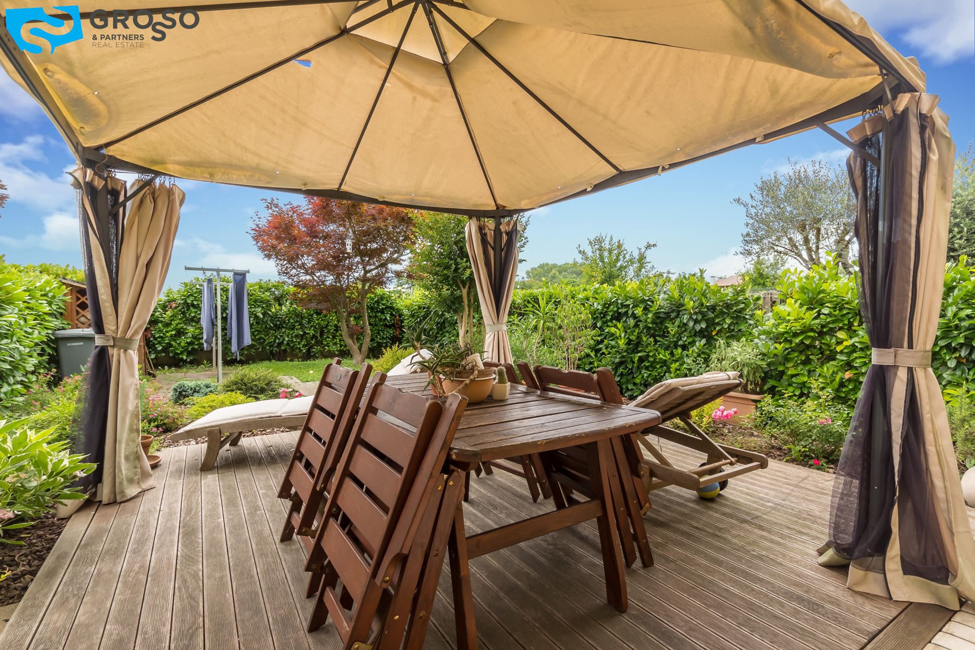 Treviso località Canizzano, in zona residenziale immersa nel verde vendiamo porzione di casa a schiera centrale così composta: al piano terra soggiorno con cucina a vista, bagno giorno, portico, scoperto privato di mq 120, al primo sottostrada locale utilizzato ad uso tarverna, due ripostigli, lavanderia, box auto, piano primo tre camere da letto di cui due singole ed una matrimoniale, bagno, piano secondo ed ultimo stanza pluriuso .