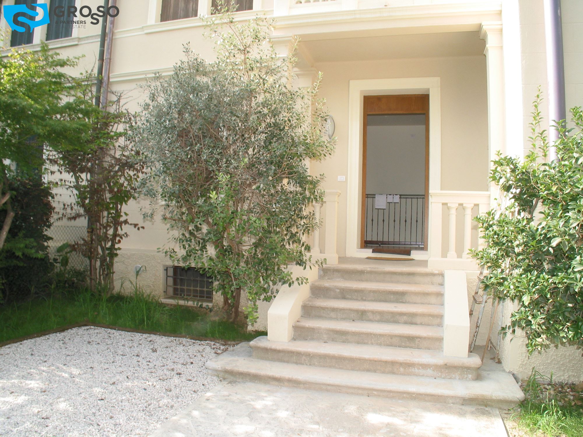 In una delle zone più suggestive del centro storico, appartamento in villa in stile liberty con ingresso indipendente e giardino di proprietà. L'unità si sviluppa su due livelli: al piano rialzato, ingresso con soggiorno-pranzo-cucina, due camere matrimoniali, due bagni finestrati (uno con doccia e uno con vasca entrambi con idromassaggio) e un ripostiglio; al piano seminterrato finestrato (alto m 2.70), taverna/cucina, camera con bagno, lavanderia/stireria, cantina e locale caldaia. L'appartamento è stato completamente ristrutturato nel 2008 con finiture di ottimo livello. Riscaldamento autonomo a pavimento, coibentazione termica e acustica. Libero da subito!. Per info previo appuntamento al 3928433299.