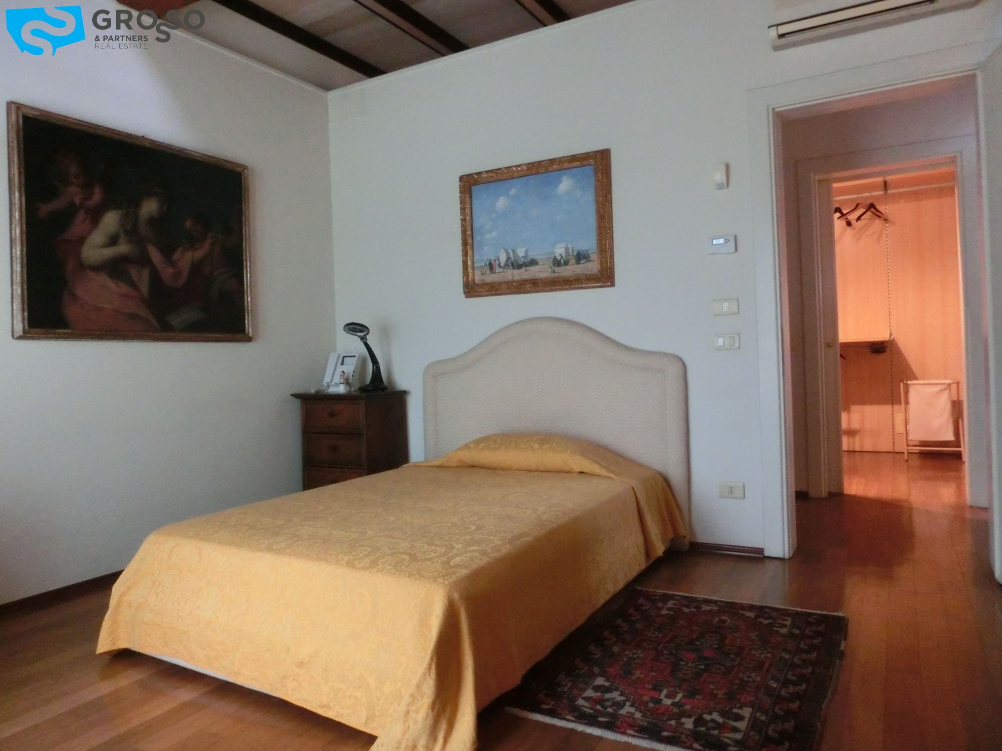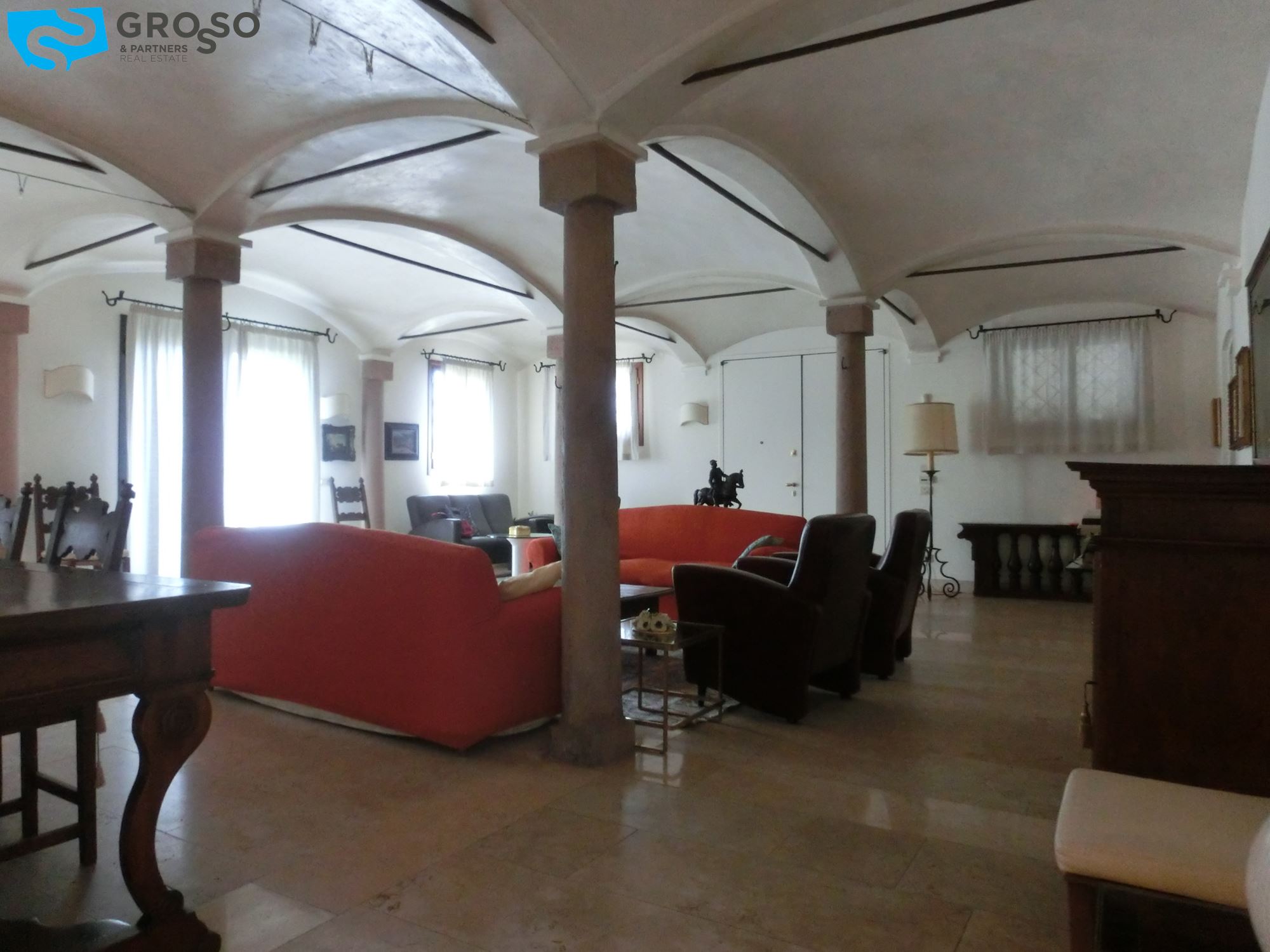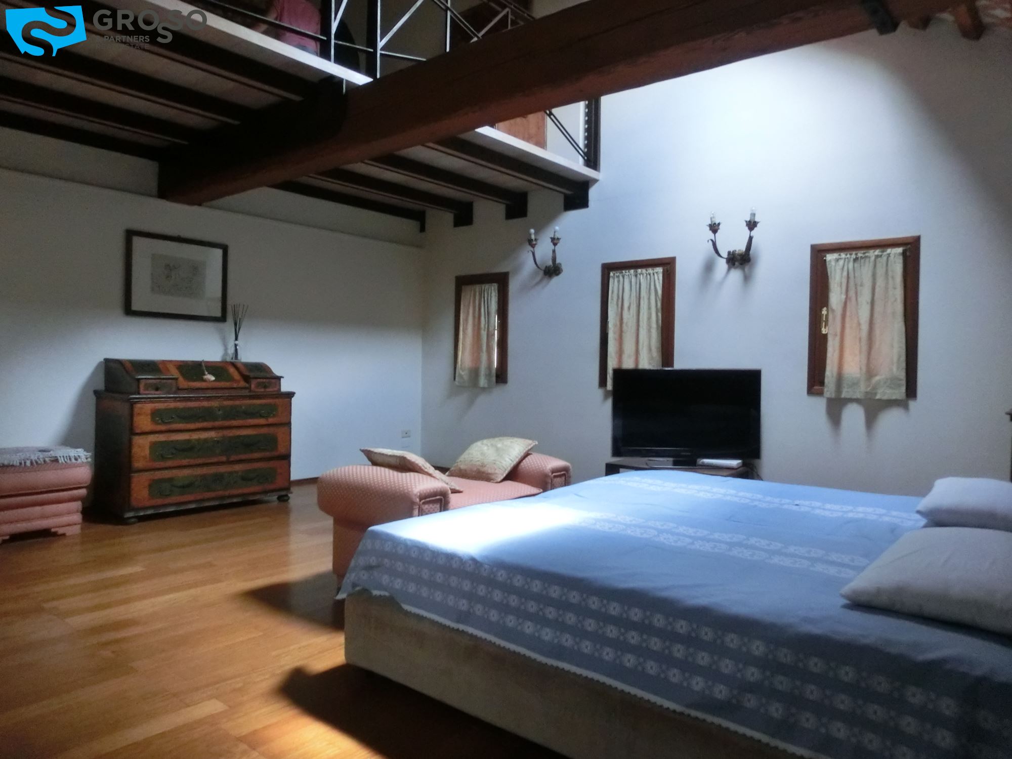 In villa veneta del 1700, lussuosa porzione terra-cielo di mq 280 comm.li disposta su più livelli a circa 8/9 km dal centro di Treviso, in zona molto servita. La proprietà al piano terra è composta da ingresso sul soggiorno di 50 mq con splendido soffitto a volta, cucina separata, un servizio, lavanderia e locale caldaia; al primo piano tre ampie camere, bagno con vasca idromassaggio, una matrimoniale enorme con il suo bagno, ripostiglio e grande soppalco da adibire a stanza pluriuso. Scoperto privato e grande parco secolare ad uso condominiale. Al piano interrato garage doppio, un posto auto coperto e uno scoperto. Libera subito.