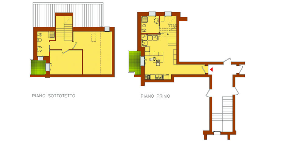 Lancenigo di Villorba disponiamo di appartamento al piano primo duplex cosi composto ingresso soggiorno con cottura a vista, bagno e terrazza, al piano mansardato, due camere matrimoniali, bagno e terrazza.