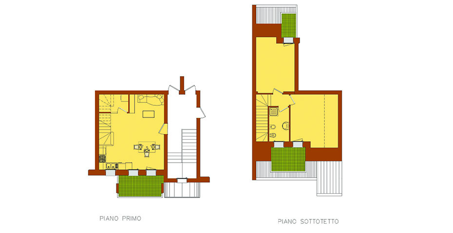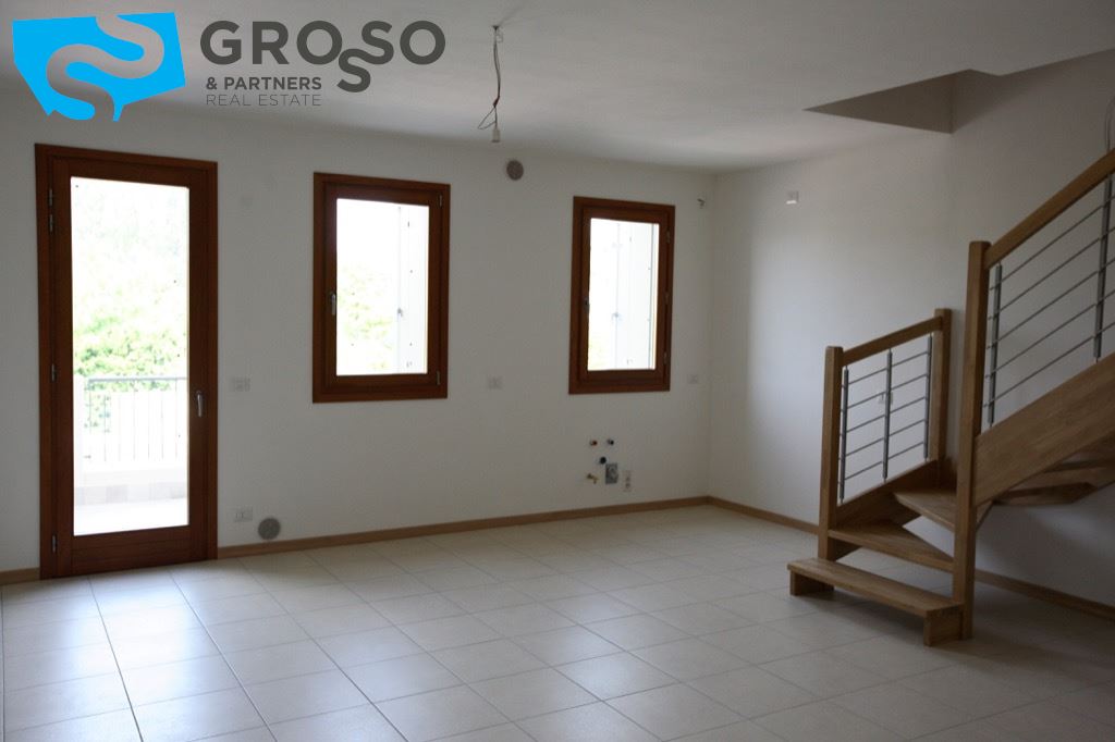 Lancenigo di Villorba, appartamento su due livelli al piano primo cosi disposto ingresso soggiorno con cottura a vista, bagno e terrazza, al piano mansardato, due camere matrimoniali bagno e due terrazze.