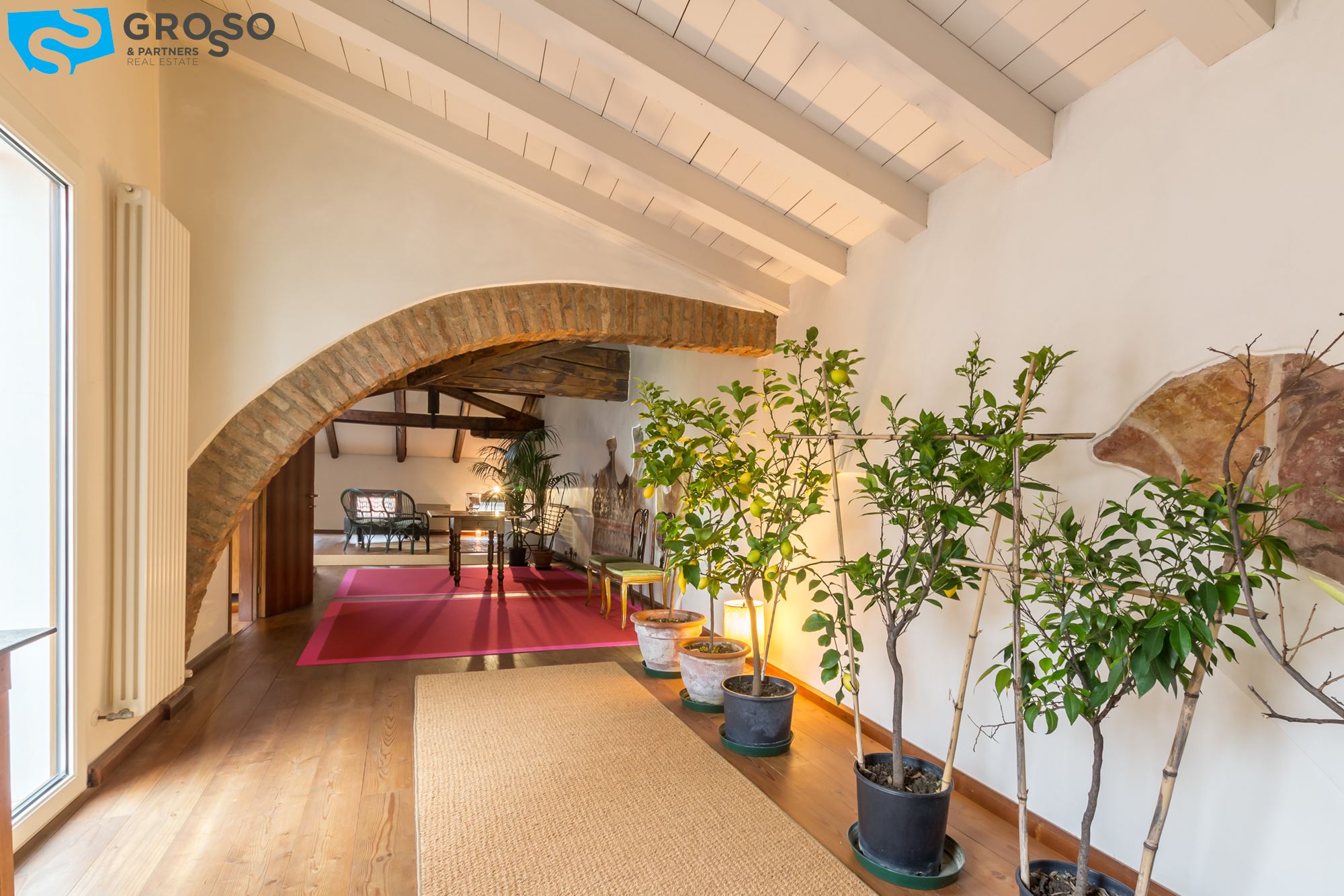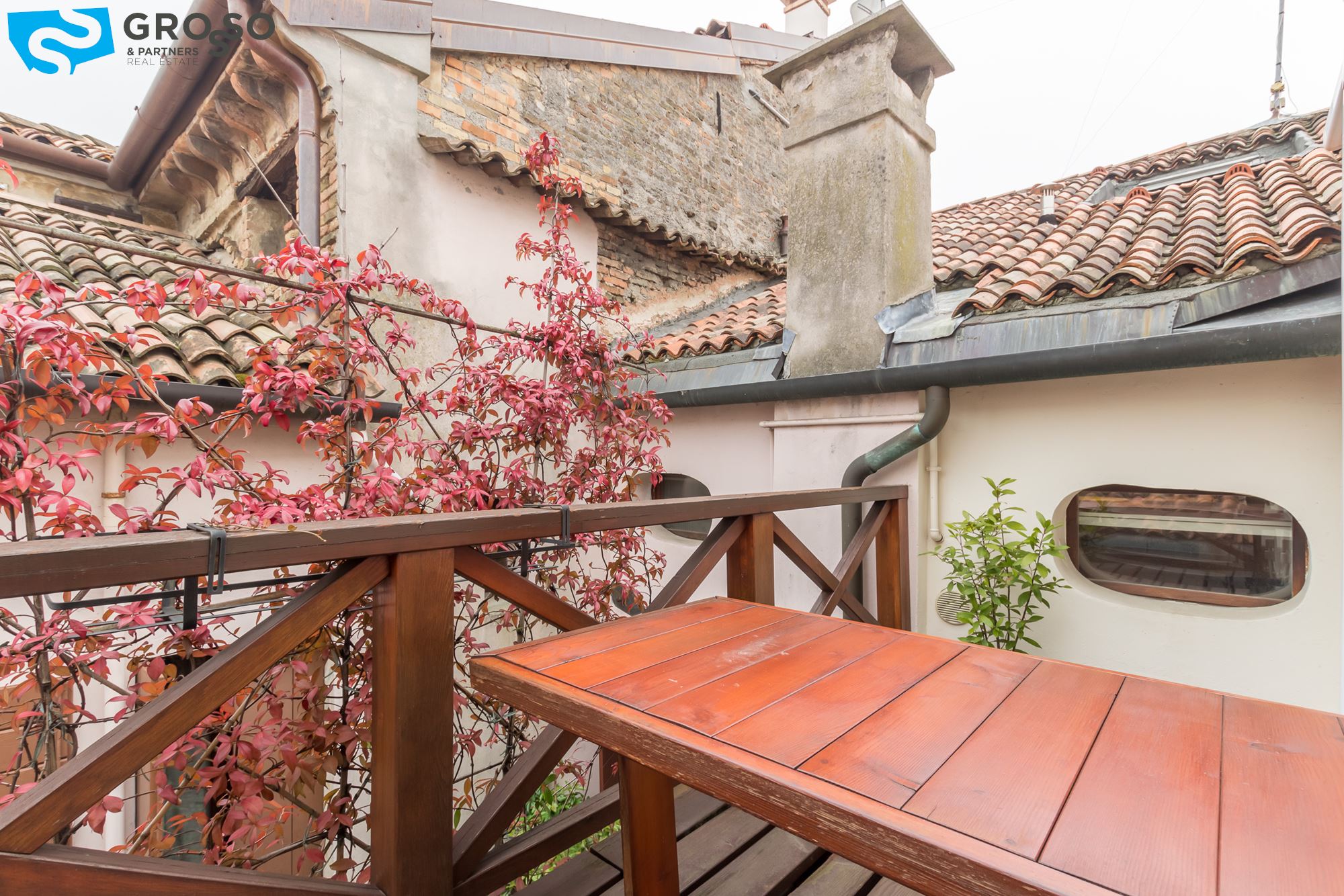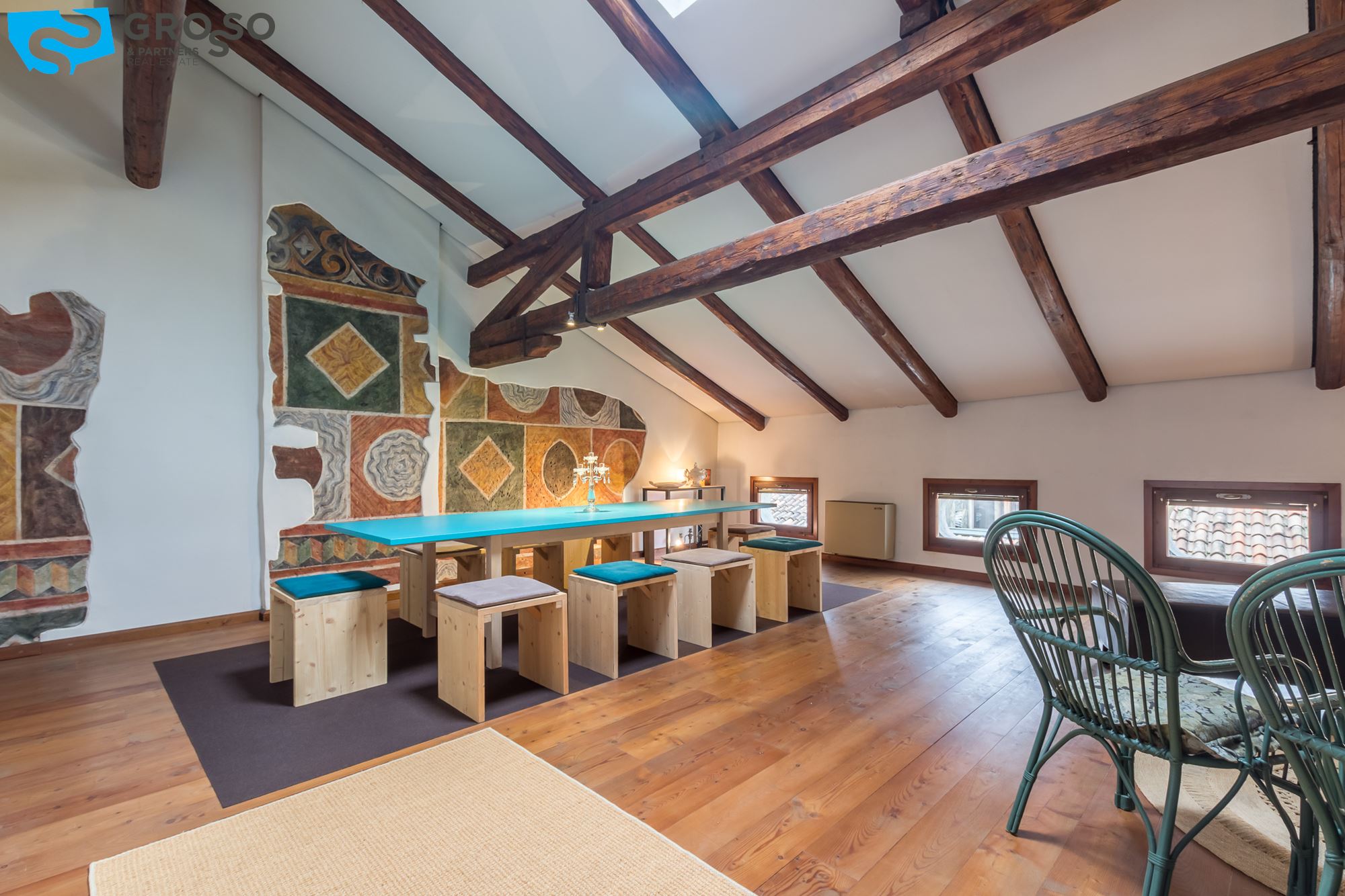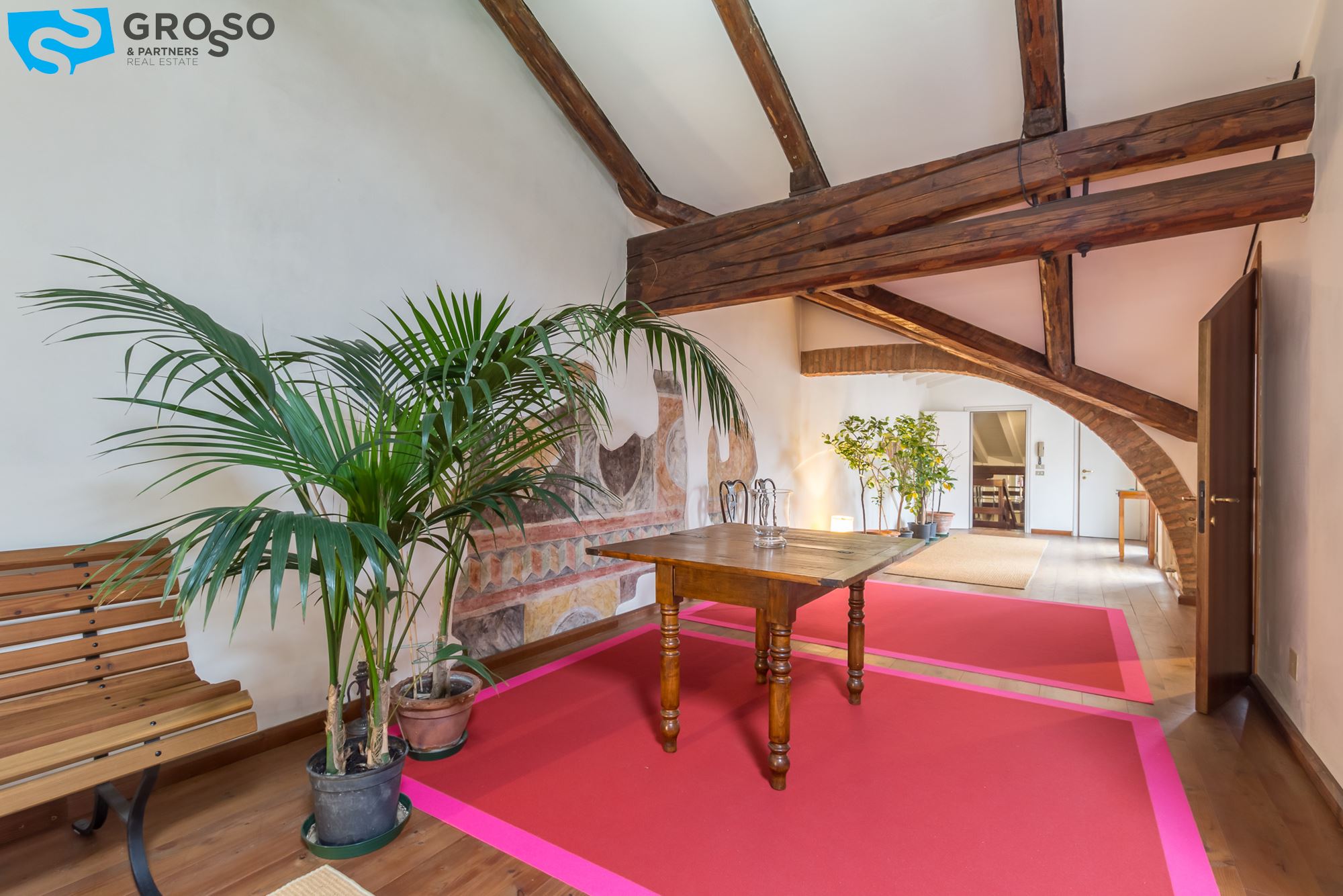 Treviso, centro storico, appartamento all'ultimo piano, affrescato e così composto: soggiorno con zona pranzo e cucina separata, due camere, doppi servizi, terrazza abitabile.