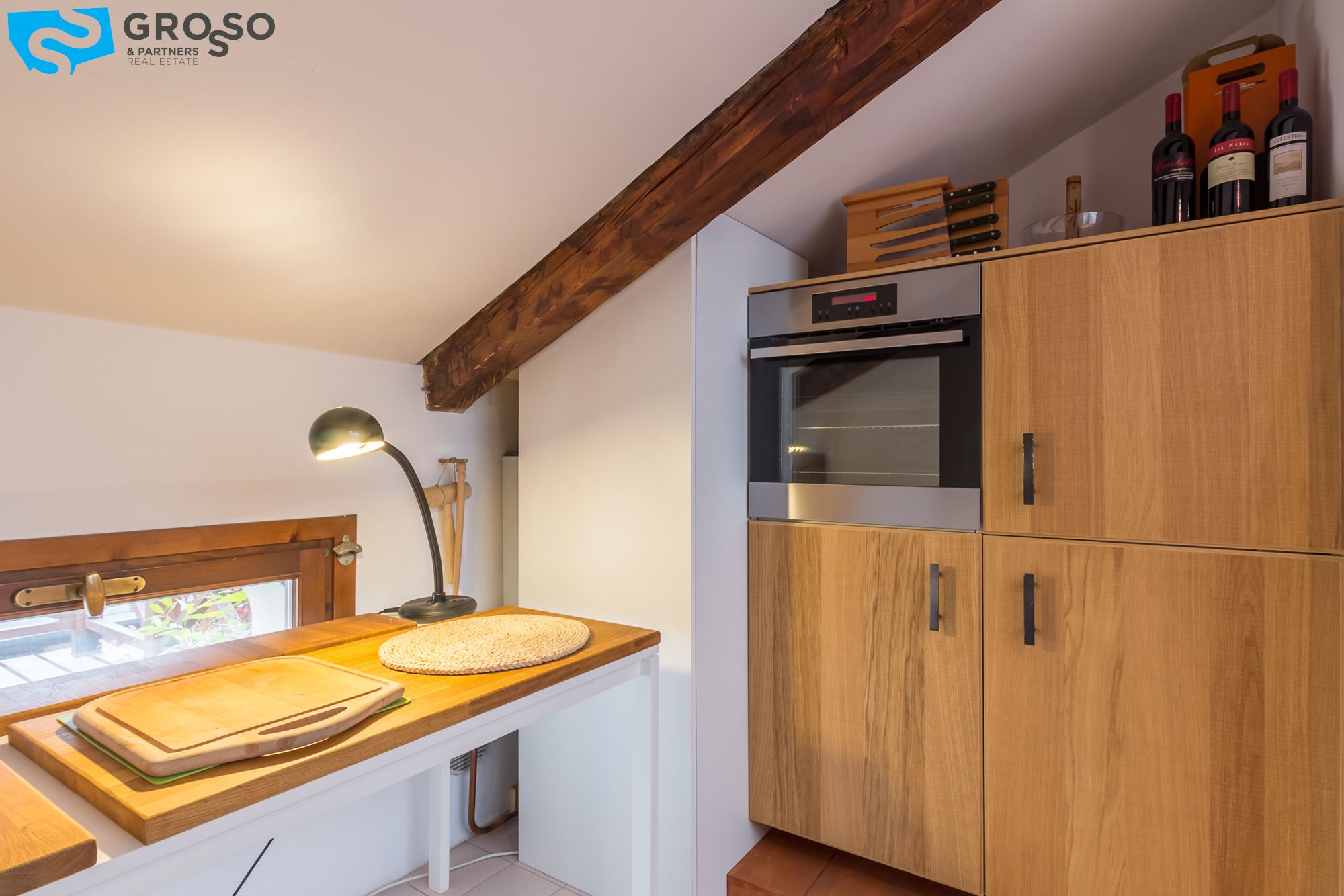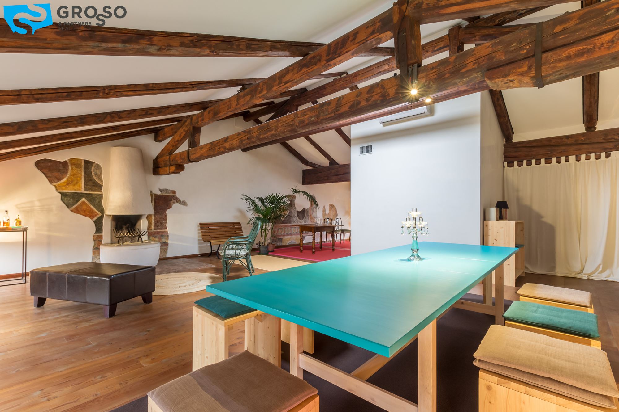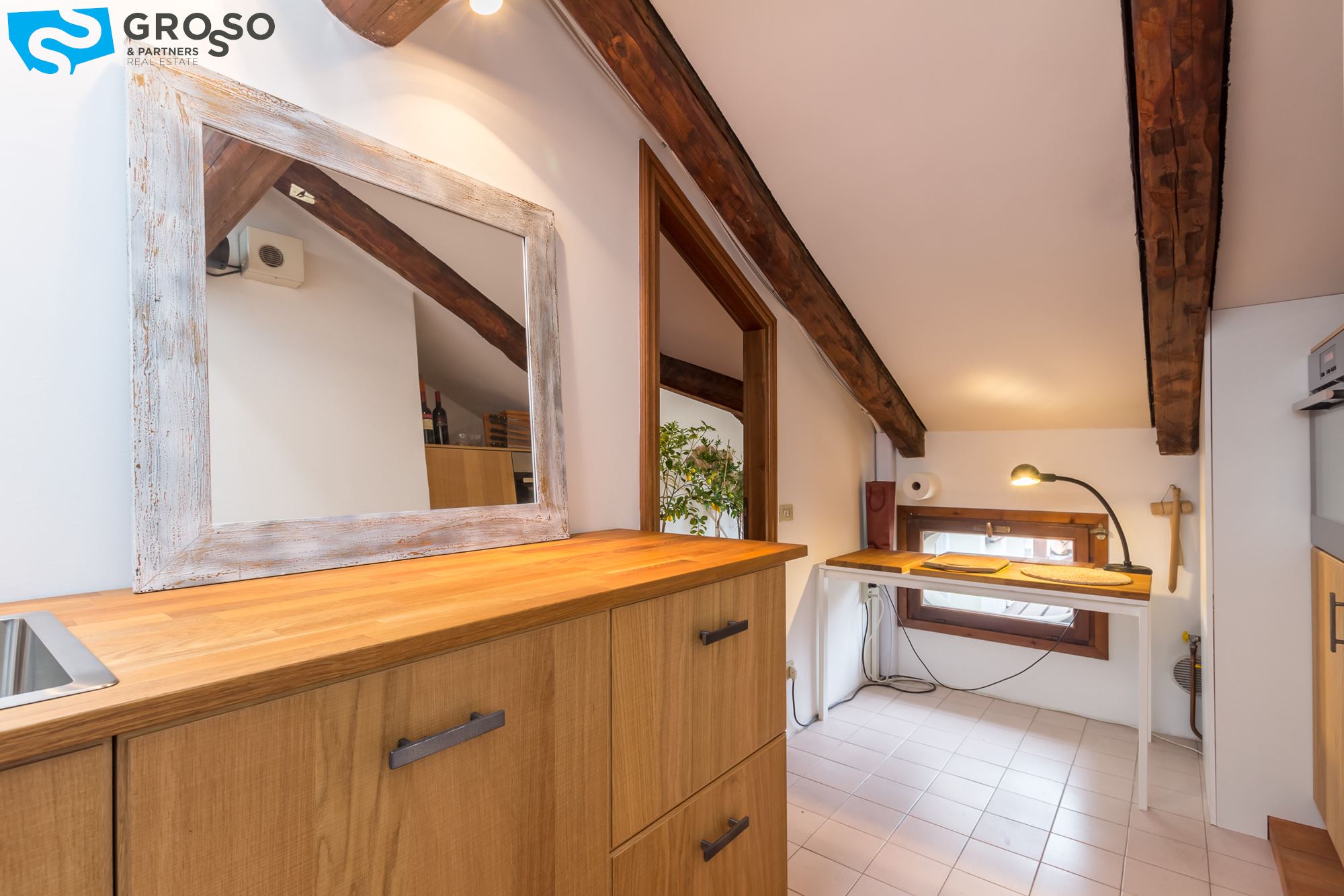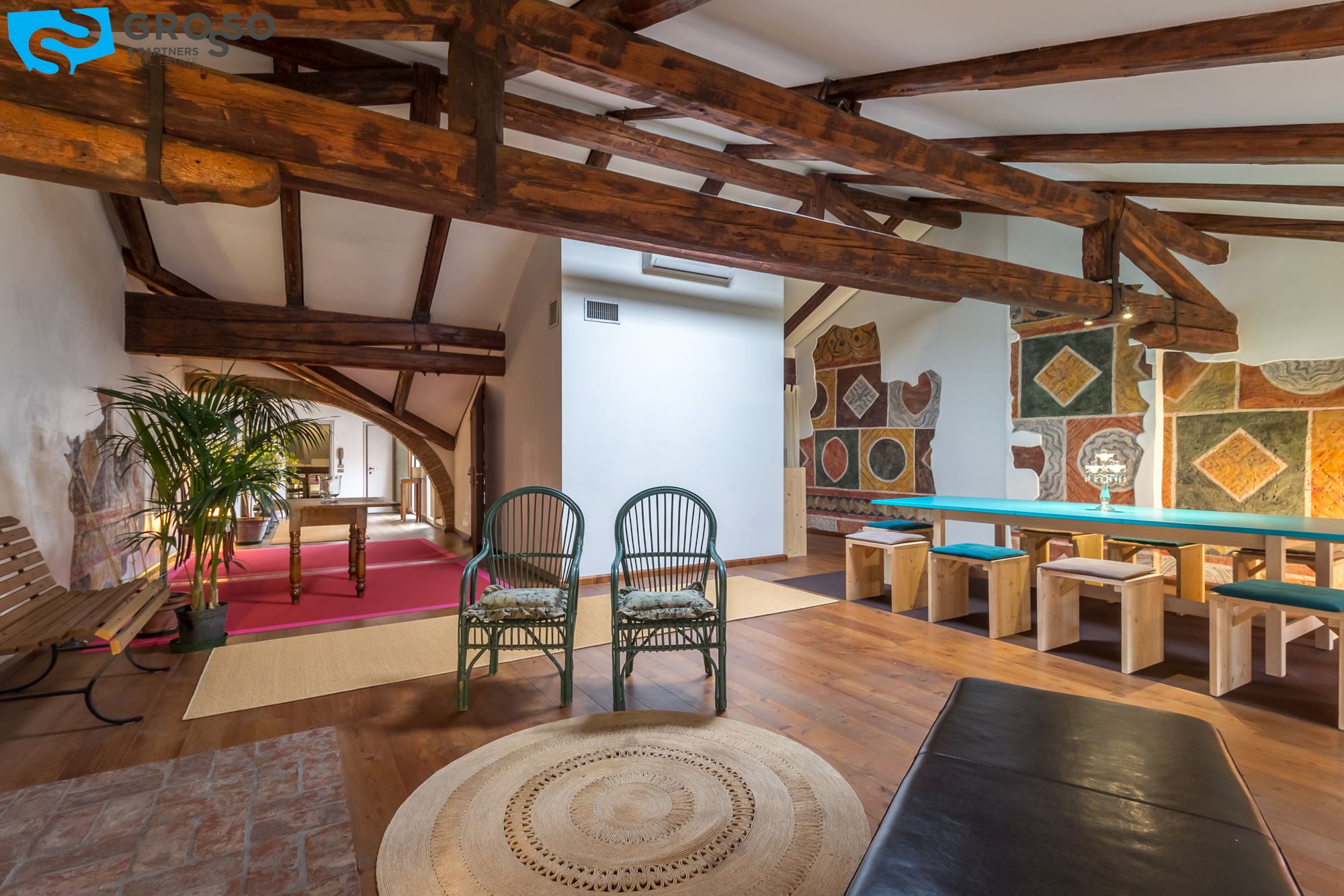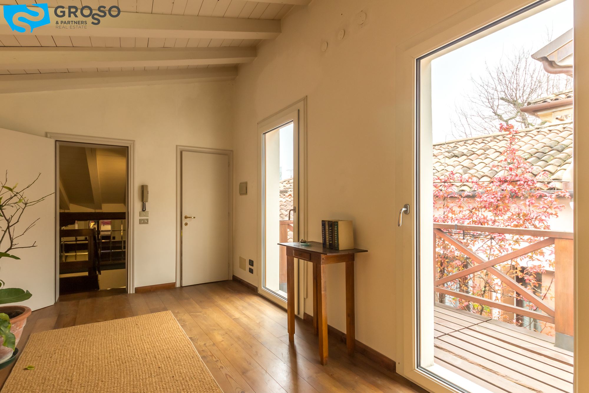 Treviso, centro storico, appartamento all'ultimo piano, affrescato e così composto: soggiorno con zona pranzo e cucina separata, due camere, doppi servizi, terrazza abitabile.