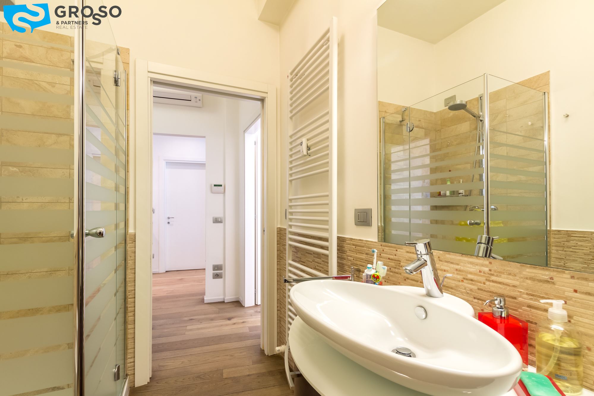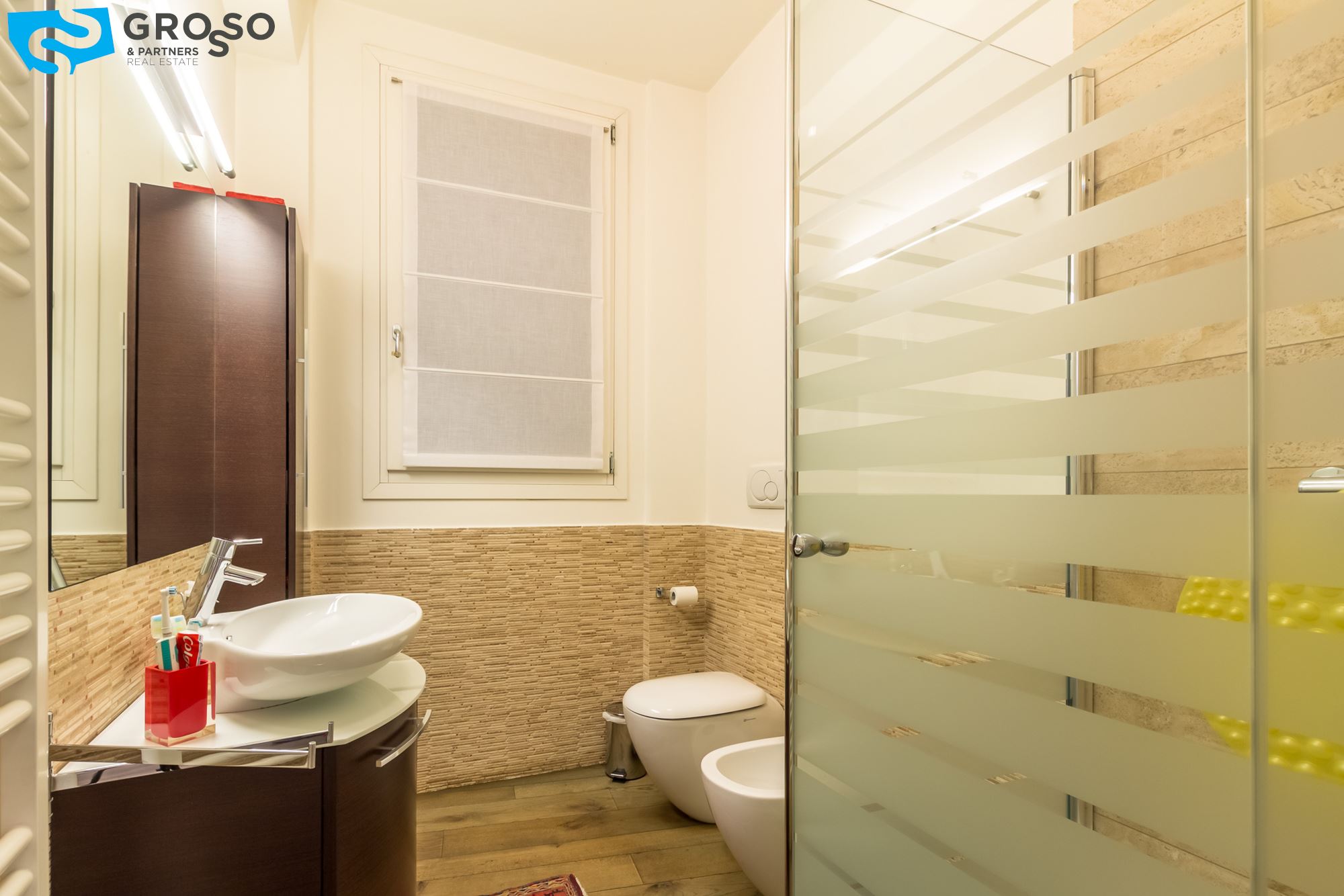 Treviso centro storico, vicinanze Duomo appartamento di 105 mq al secondo piano con ascensore inserito in contesto signorile di sole 8 unità ubicato in zona centralissima, ristrutturato recentemente con finiture di pregio: pavimento in legno a doghe in tutti i locali, zanzariere, persiane elettriche, allarme volumetrico e perimetrale, aria condizionata a pompa di calore sia nella zona giorno che nella zona notte.