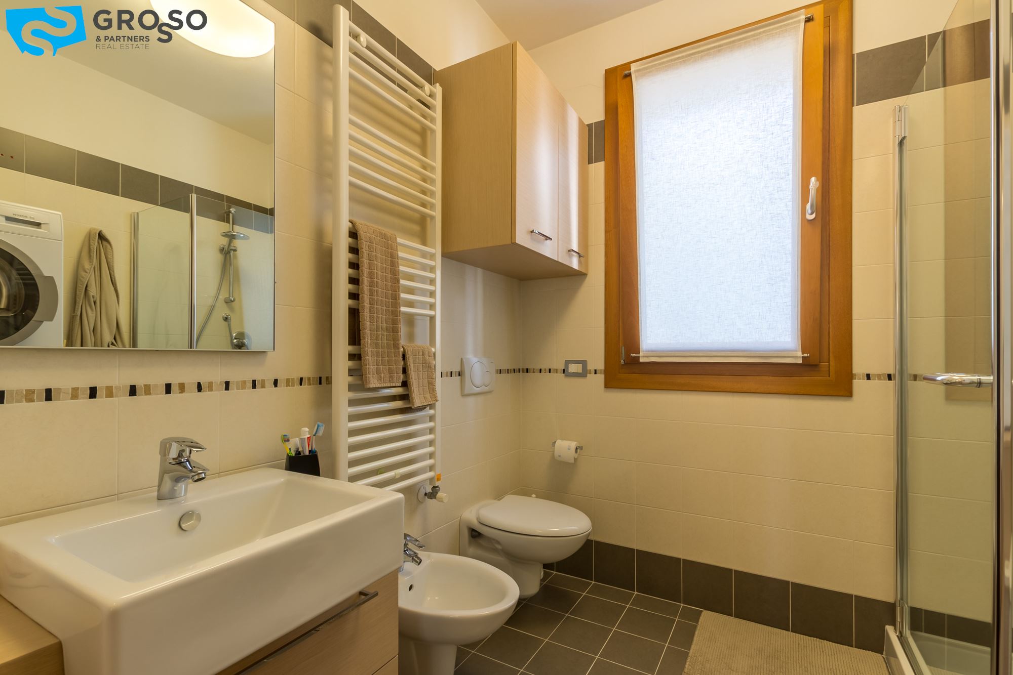 Riscaldamento autonomo, aria condizionata, ascensore e videocitofono. Viene lasciato arredato di cucina, bagni e alcune armadiature.