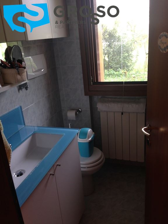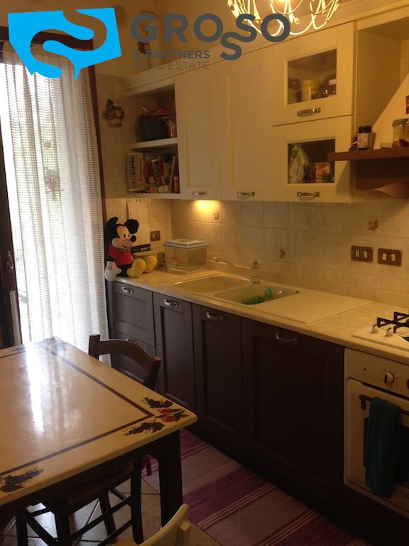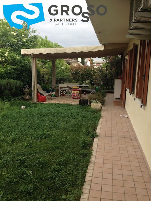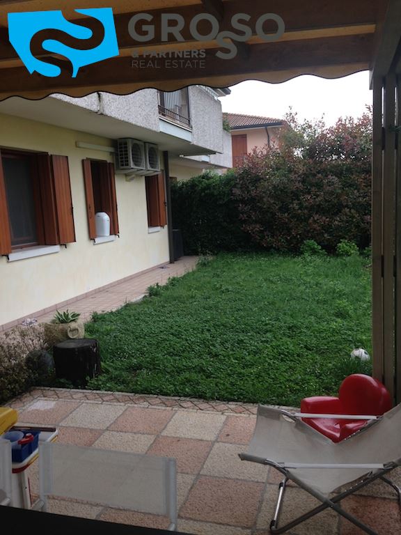 In residence degli anni '90 di sole 6 unità, appartamento al piano terra composto da ingresso nel soggiorno, cucina separata, corridoio per armadio a muro, una camera matrimoniale, una doppia,un bagno con vasca e uno con doccia, giardino di 90 mq con pompeiana per le cene estive, garage singolo, cantina /lavanderia di mq 9 e posto auto esterno in uso esclusivo. Riscaldamento autonomo, aria condizionata.