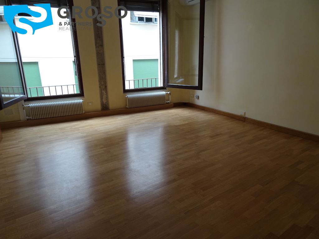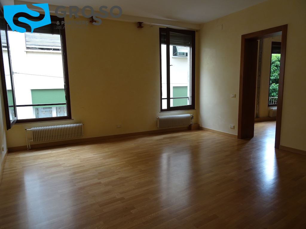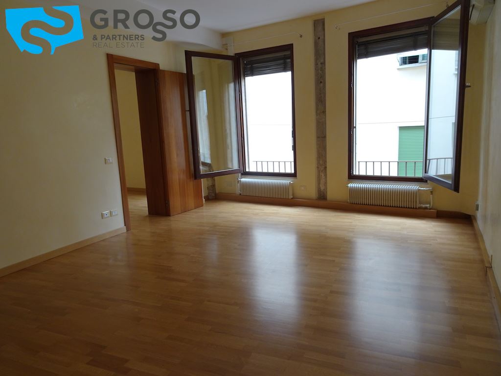 Treviso centro storico, nelle immediate vicinanze della chiesa di San Nicolò, in palazzetto d'epoca ristrutturato, disponiamo di appartamento di pregio posto al piano secondo servito da ascensore e così composto: ingresso, soggiorno con zona pranzo, ampia cucina separata abitabile, due camere matrimoniali e doppi servizi. Finiture di pregio: infissi in legno con vetrocamera, porta blindata, pavimenti in legno e muri in spatolato alla veneziana. Al piano terra ampio garage con attacco lavatrice e soppalco (da adibire eventualmente ad uso ufficio), magazzino comune pluriuso. riscaldamento autonomo, aria condizionata, spese condominiali comprensive di acqua, amministrazione, pulizie e ascensore.