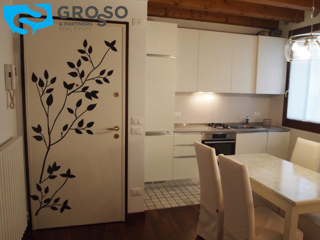 Treviso, centro storico, al primo piano di una palazzina di 8 unità, inserito nella servitissima zona di Borgo Cavalli, affittiamo bellissimo mini appartamento completamente ristrutturato nel 2000, molto curato e dotato di tutti i comfort. L'immobile si compone di: ingresso su soggiorno/pranzo con angolo cottura, bagno finestrato e camera da letto. Di pertinenza, con accesso esterno al portoncino di ingresso dell'appartamento, un comodo ripostiglio ad uso lavanderia/disbrigo. Possibilità di parcheggiare una bici all'interno. Completamente arredato e accessoriato, legno ovunque, aria condizionata, riscaldamento autonomo e travi a vista.