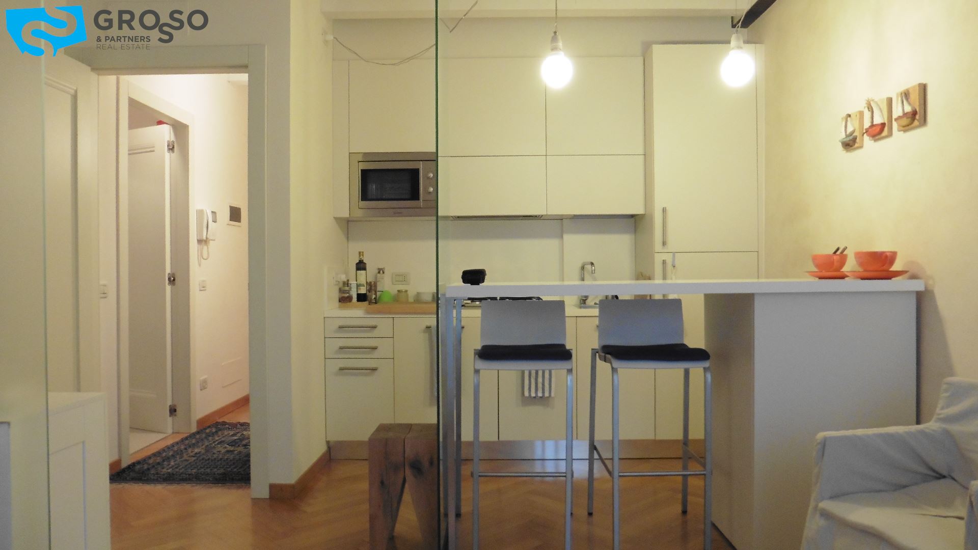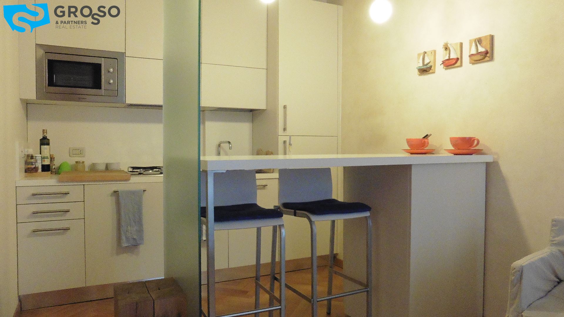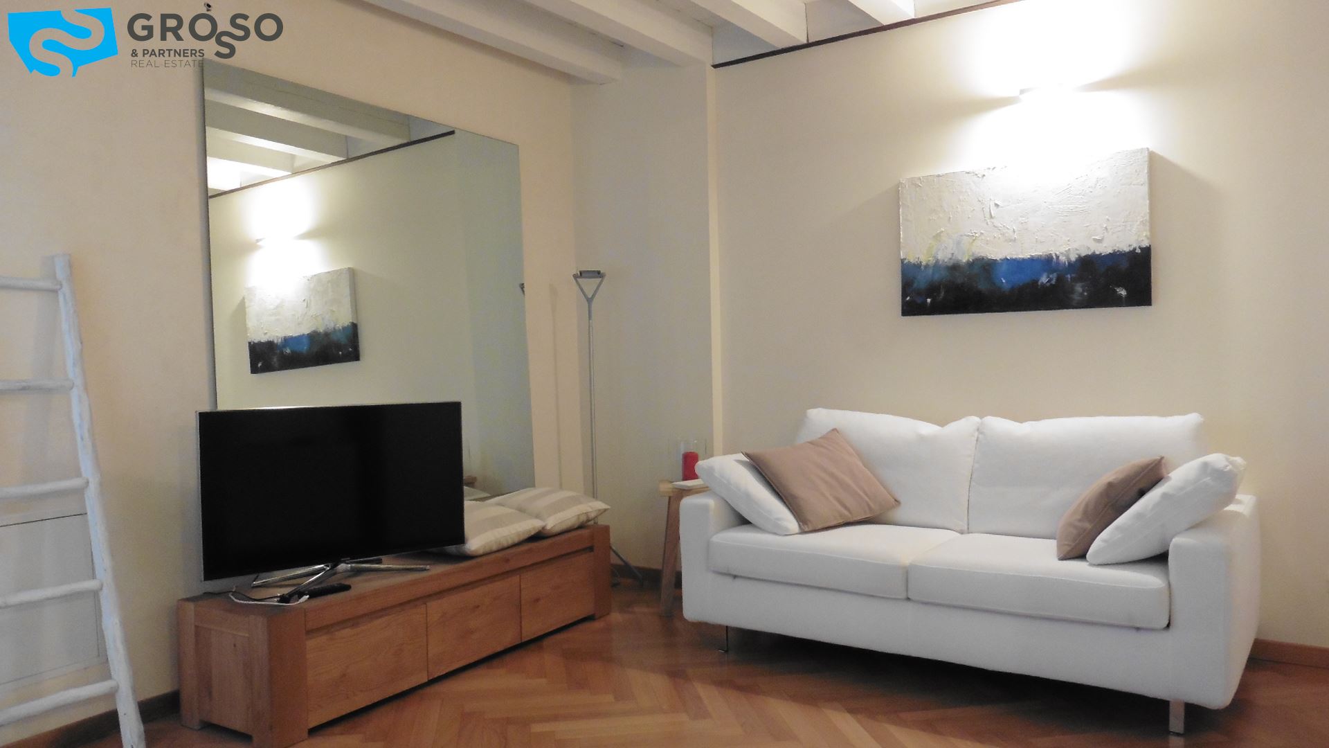 Treviso centro storico zona piazza Pola, monolocale in palazzo storico, sia il palazzo che l'appartamento sono stati oggetto di totale restauro a metà degli anni 2000, disposto al piano primo, l'appartamento viene venduto completamente arredato come da foto, è composto da un unico vano che è stato diviso in tre ambienti da delle lame di vetro acidato agganciate al soffitto, bagno separato, terrazza. Palazzo affrescato.