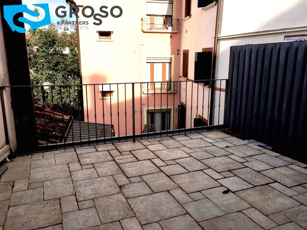 Treviso Centro Storico vendiamo porzione indipendente in contesto di palazzetto con ingresso, piano primo soggiorno, cucina, TERRAZZA ABITABILE, lavanderia, camera matrimoniale, bagno, piano secondo ripostiglio mansardato completamente travato a vista, TERRAZZA.