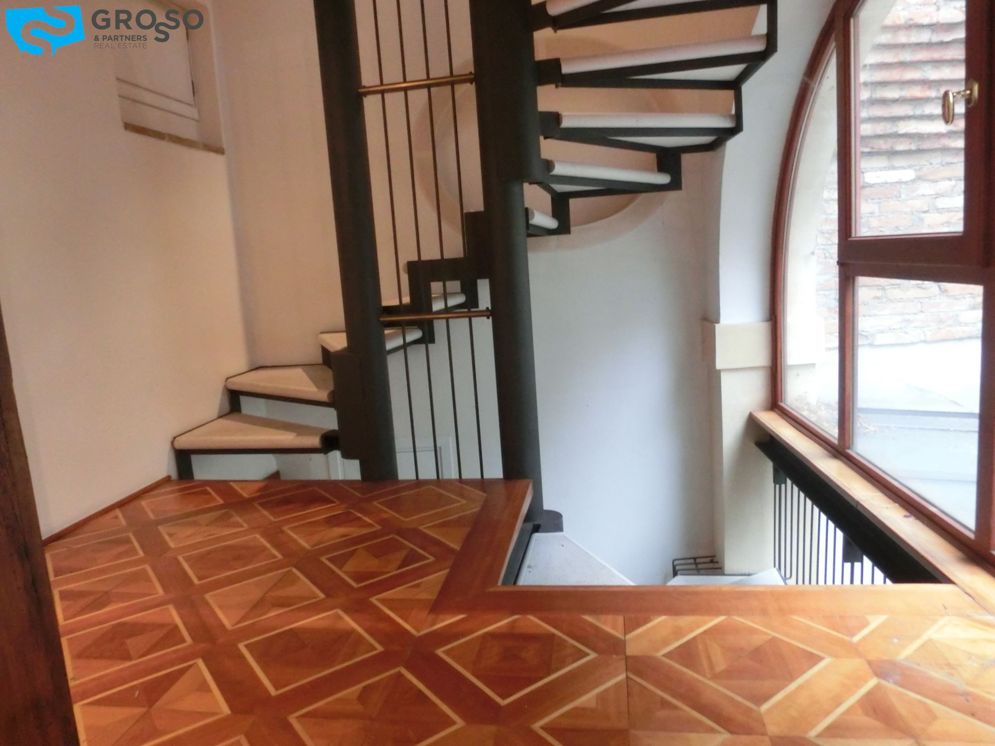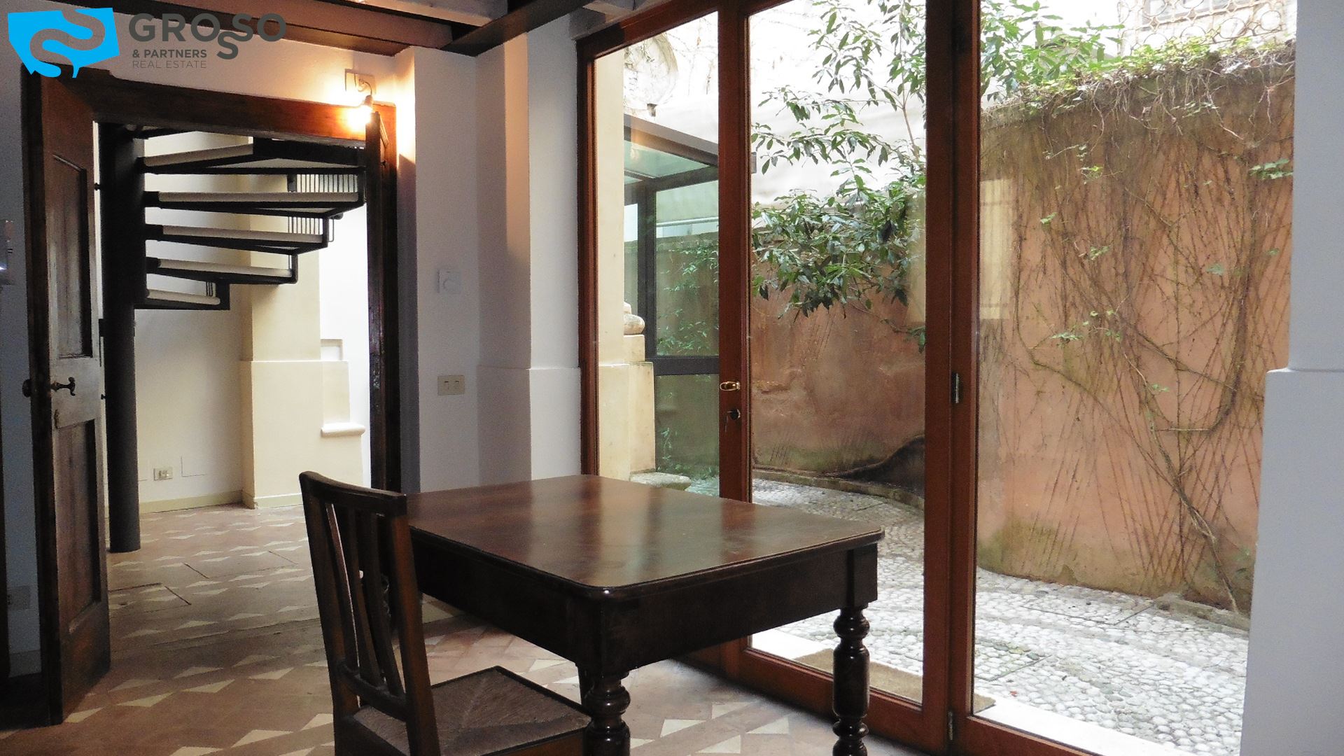In uno dei luoghi più caratteristici della città, particolare ed elegante palazzetto ristrutturato e disposto su più piani risalente al 1500 e così composto: al piano terra, ingresso, studio e un piccolo cortile privato; una camera e un bagno nel mezzanino, mentre al piano nobile un soggiorno-pranzo con grande camino, cucinotto e un bagno; due camere e un altro bagno al piano mansardato ma di grande luminosità e respiro. I materiali raffinati come il marmo, la pietra e i pavimenti in legno intarsiato caratterizzano questa proprietà unica nel suo genere. L'immobile viene venduto con un box auto nelle immediate vicinanze. Antifurto e aria condizionata. Libero da subito.