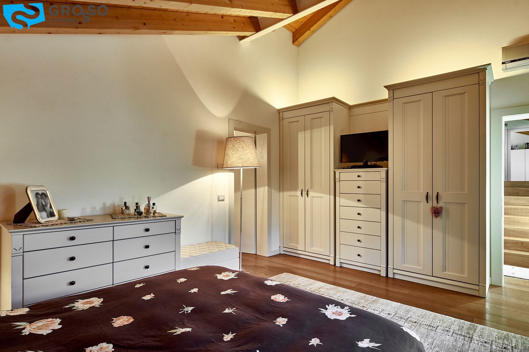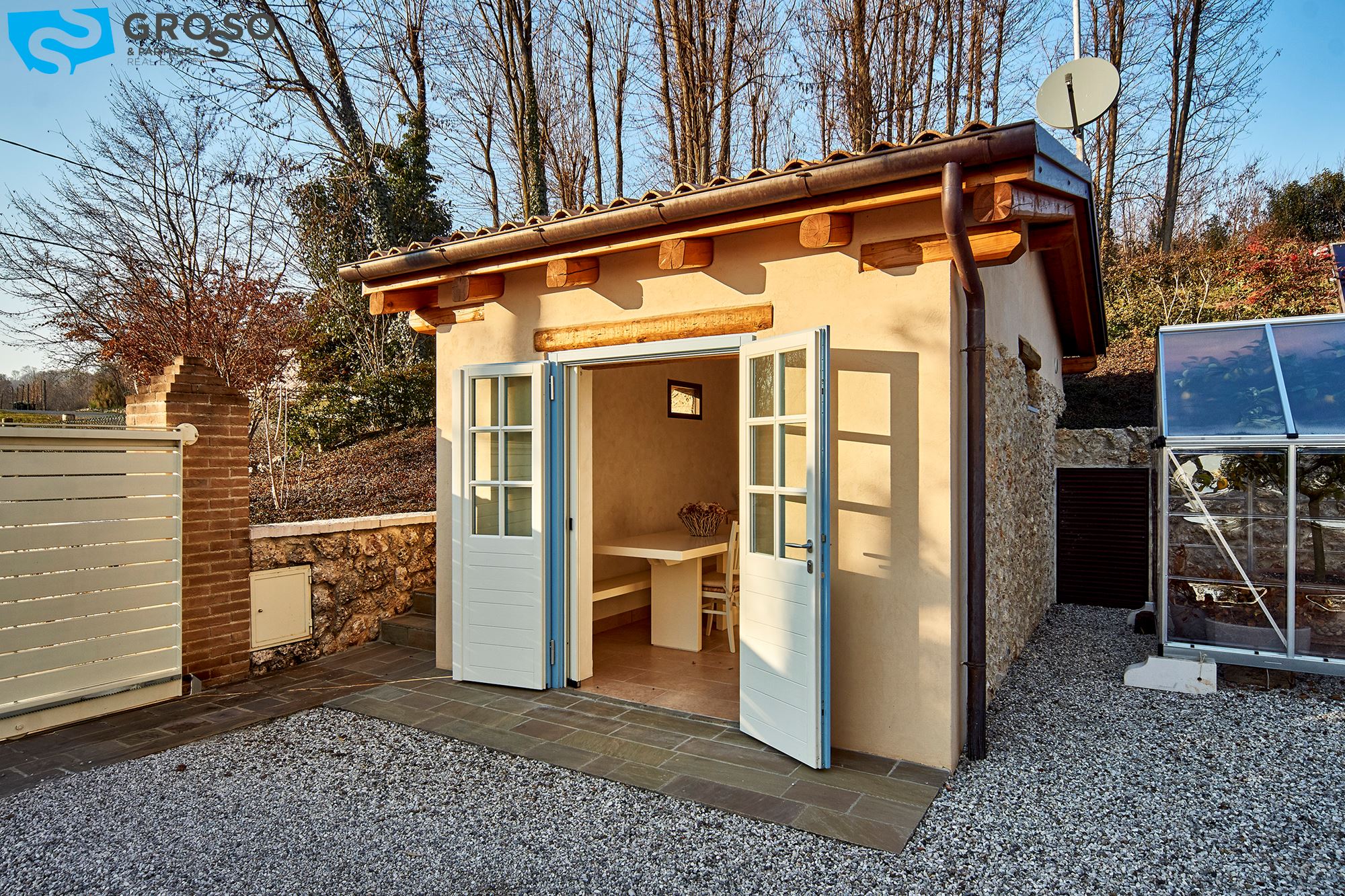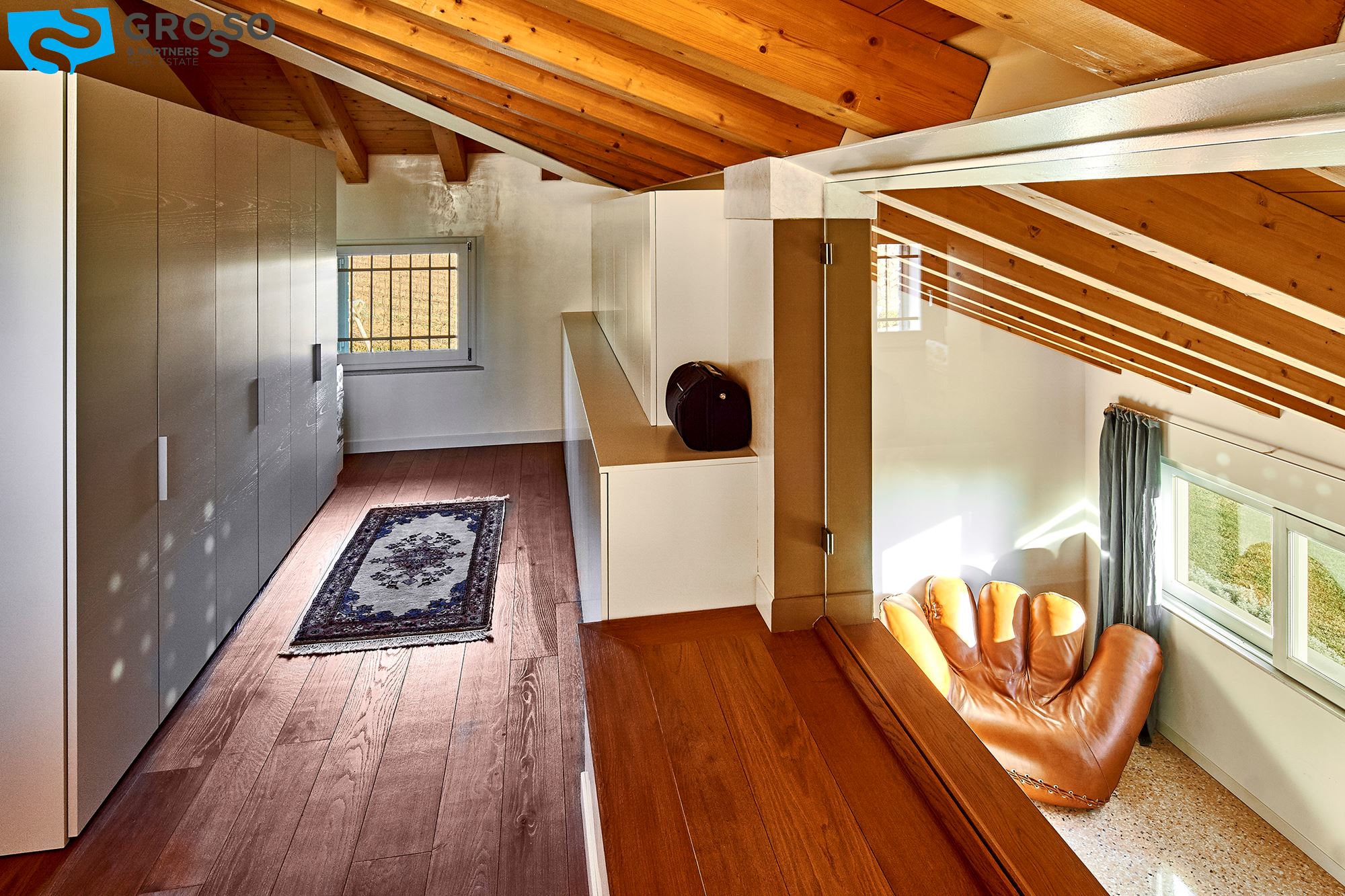 Disposta su tre livelli troviamo al piano terra un ampio salone da pranzo, cucina separata abitabile, un doppio soggiorno con camino, bagno, stanza per la donna di servizo, piano primo tre ampie camere e doppi servizi, piano interrato, enoteca, stanza pluriuso, lavanderia/stireria e bagno. Nello scoperto trova spazio un annesso adibito a stanza per le cene con camino e cucina della paiacchi. Completa la proprietà un garage di mq 100 ricavato nel terrazzamento retrostante l'abitazione.