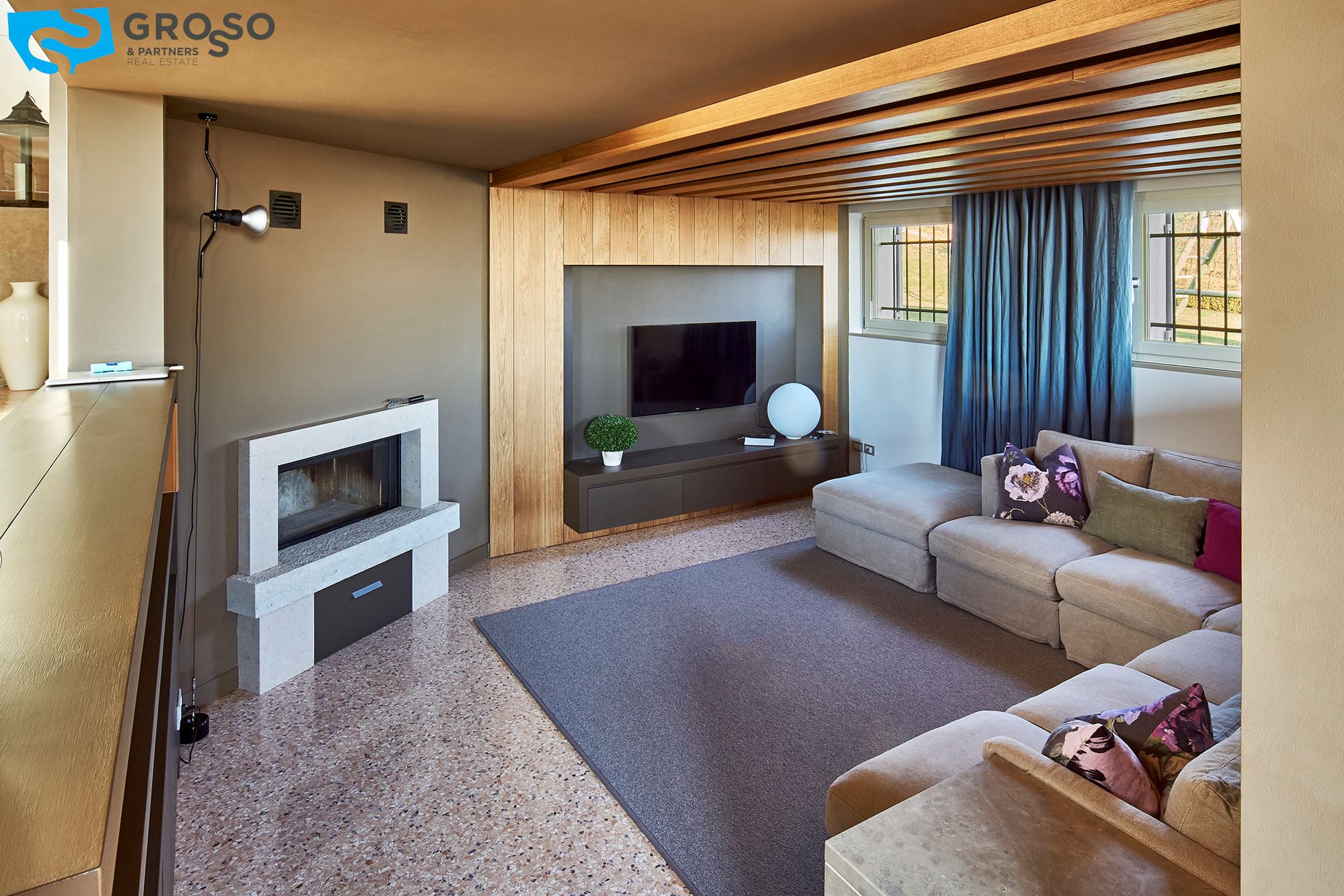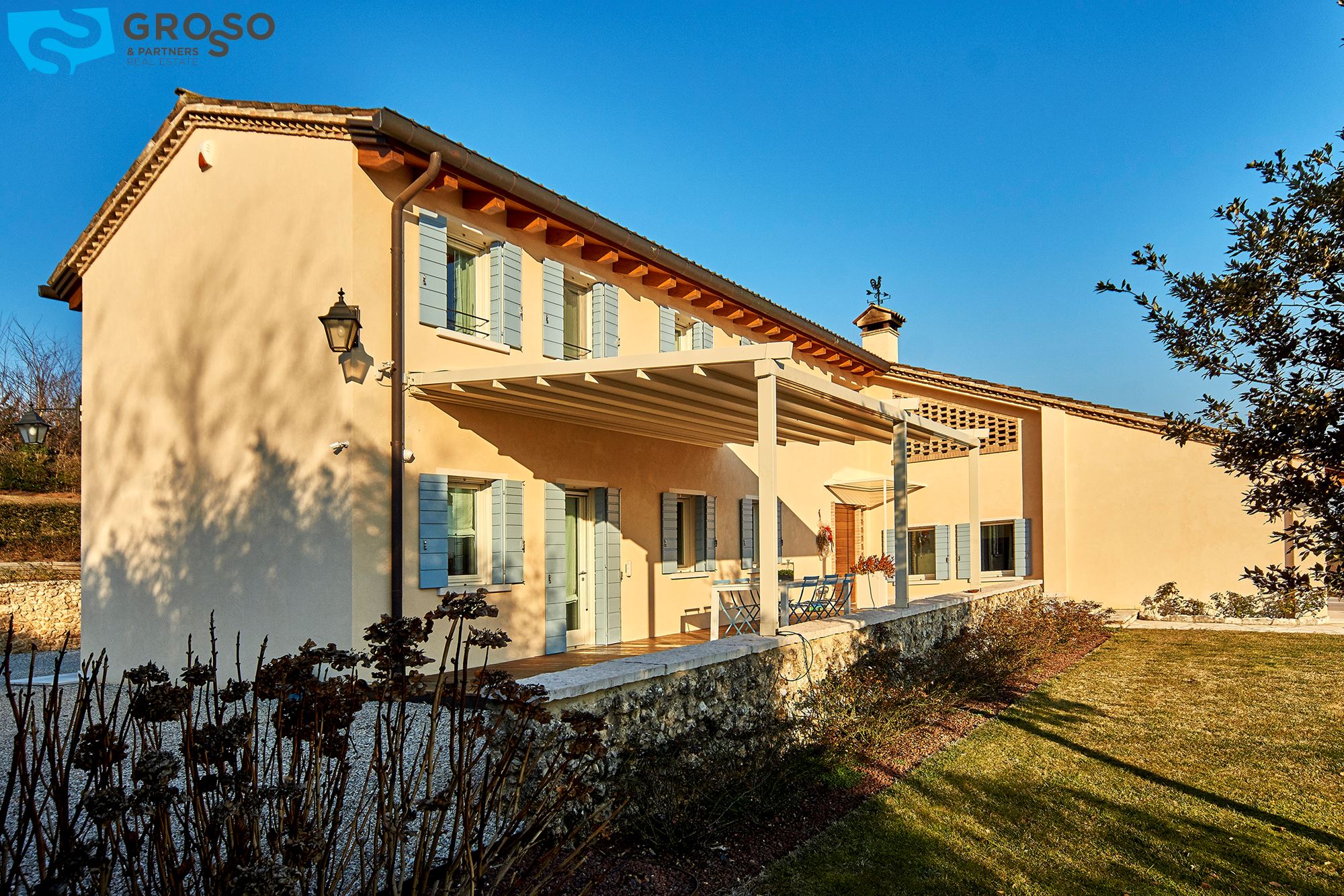 Vicinanze Montebelluna, splendida proprietà immobiliare dall'estremo fascino, costruita in chiave rustica ma con tutta la più attuale tecnologia, gode di una incantevole posizione geografica, soleggiata e ricercata, la proprietà ha un'area di pertinenza di mq 10000 così ripartiti: 5600 mq coltivati a vigneto biologico, i rimantenti 4400 mq piantumati con 50 olivi, boschetto e prato pertinenziale dell'immobile.