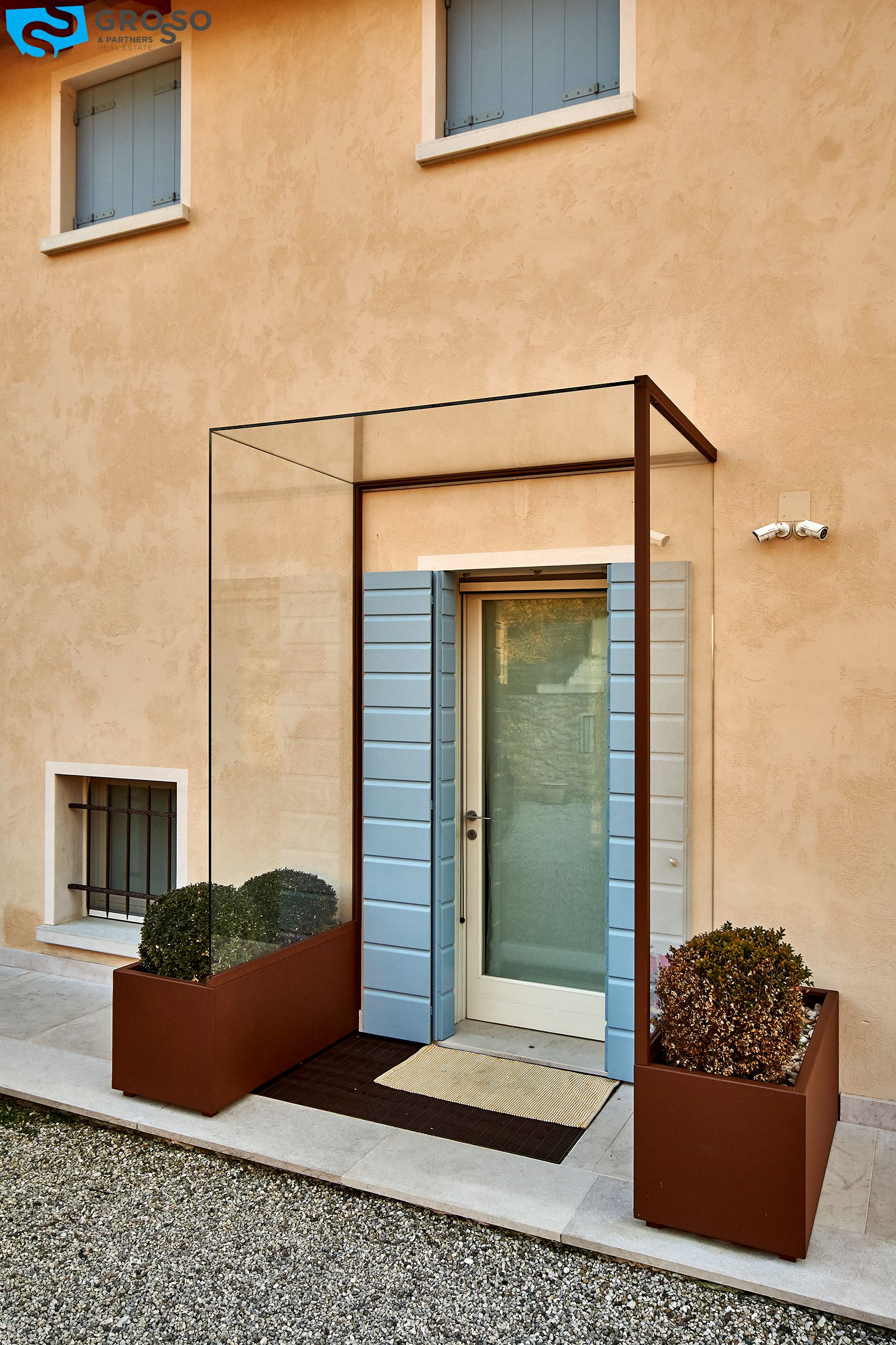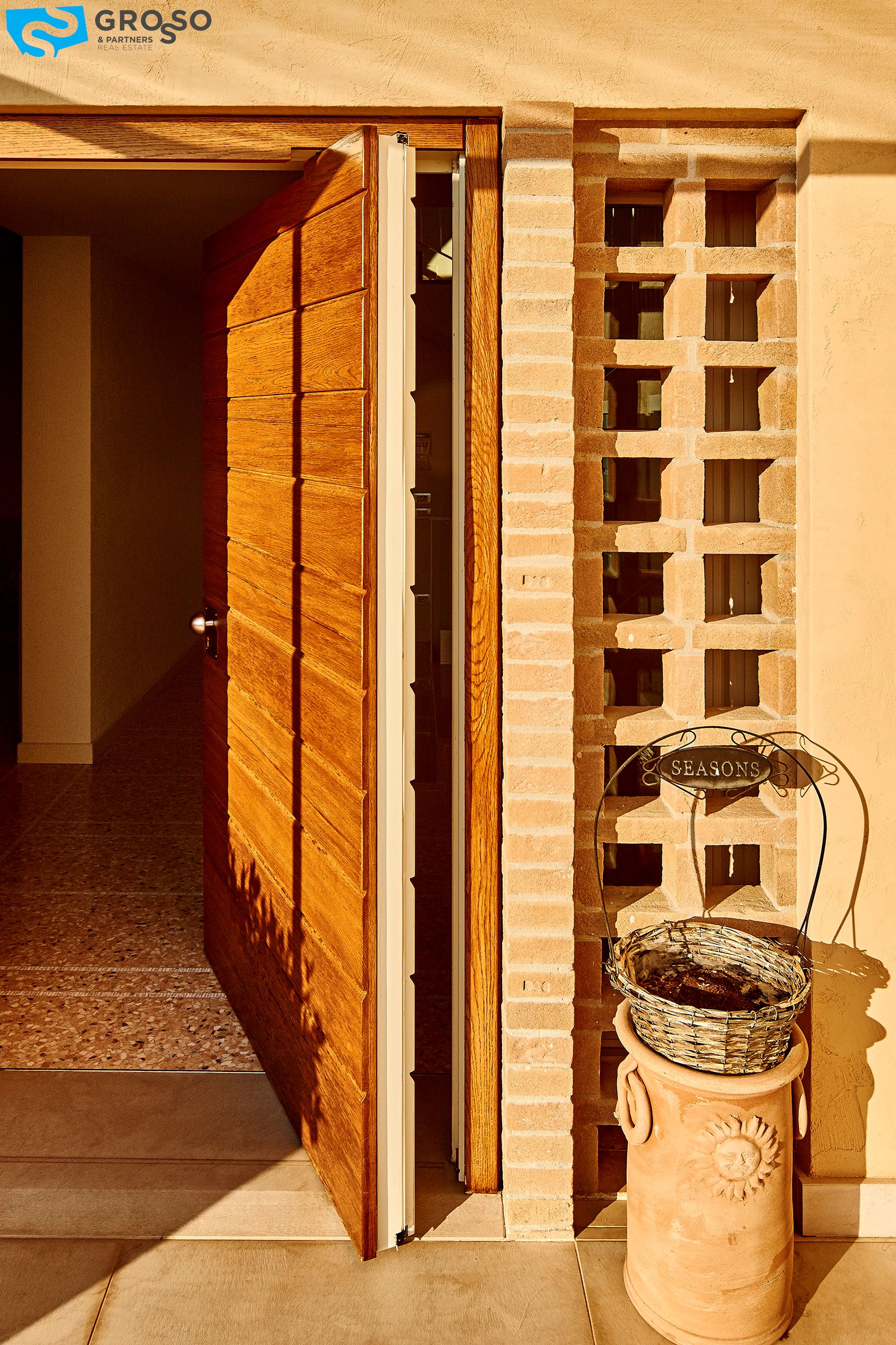 La proprietà ha triplo ingresso: uno per vigneto uno per ospiti sul fronte e uno di servizio da tutti i giorni.