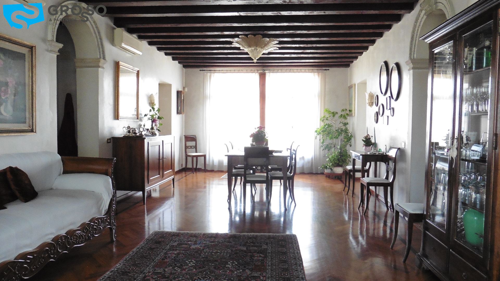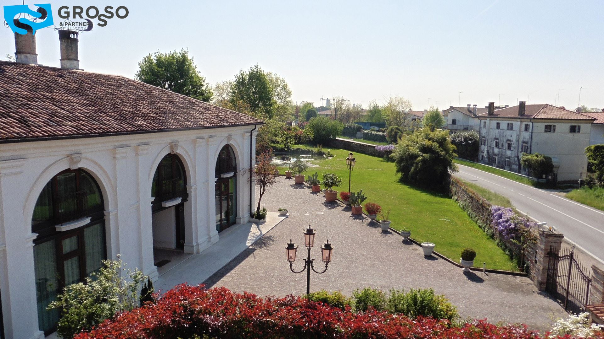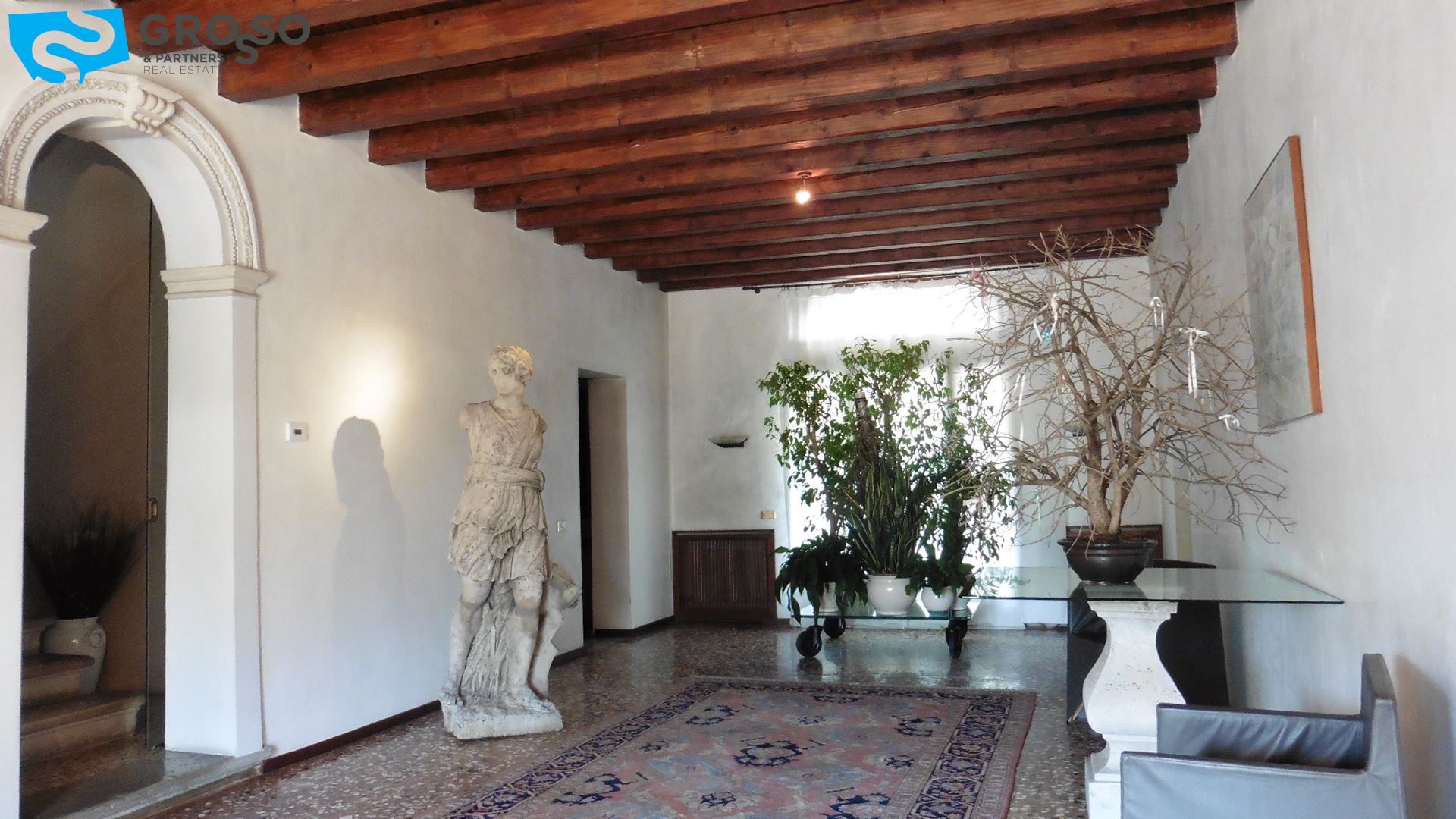Treviso Nord stupenda Villa Veneta di mq 550 completamente ristrutturata con piano terra ad uso commerciale e piano primo e secondo ad uso residenziale, pavimenti alla veneziana, tetto travi a vista con tavelle scoperto privato di mq 900