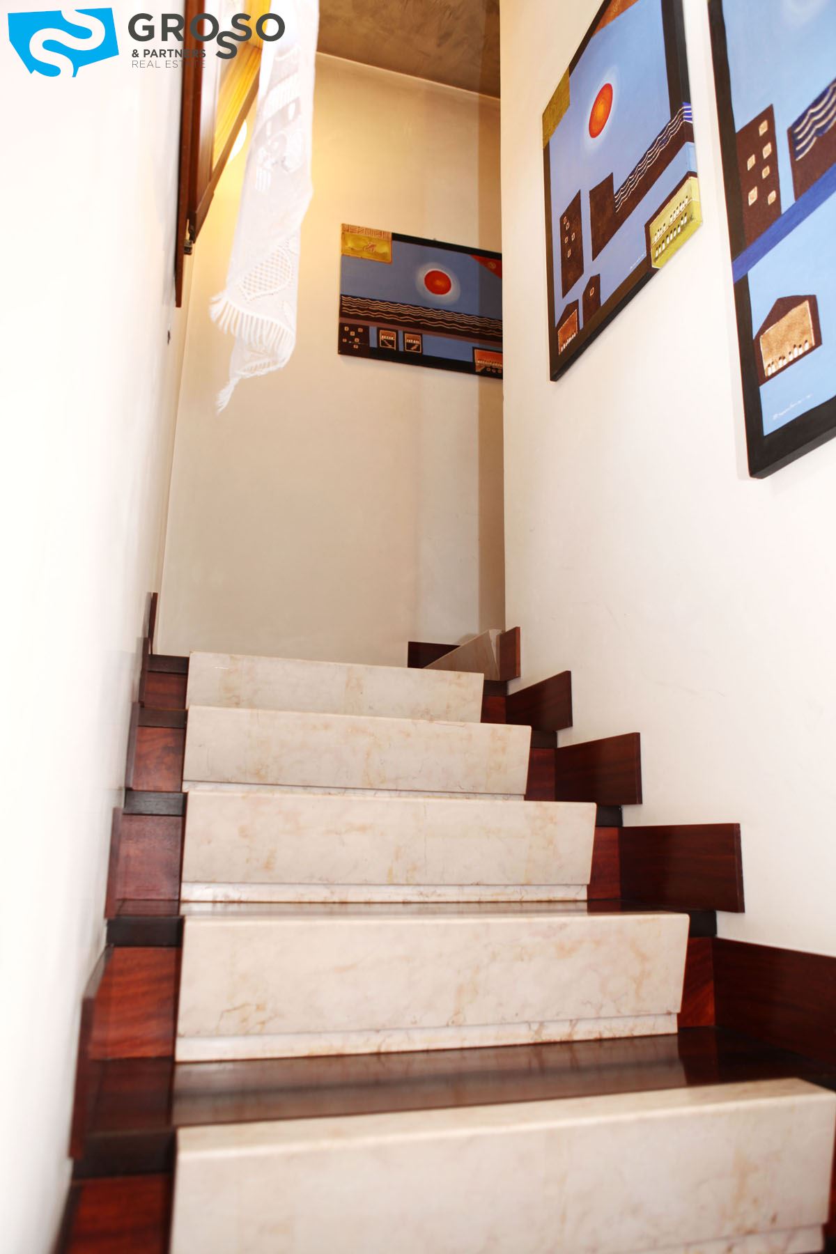 Piano primo due camere, un bagno, studio e ballatoio nel soggiorno.
