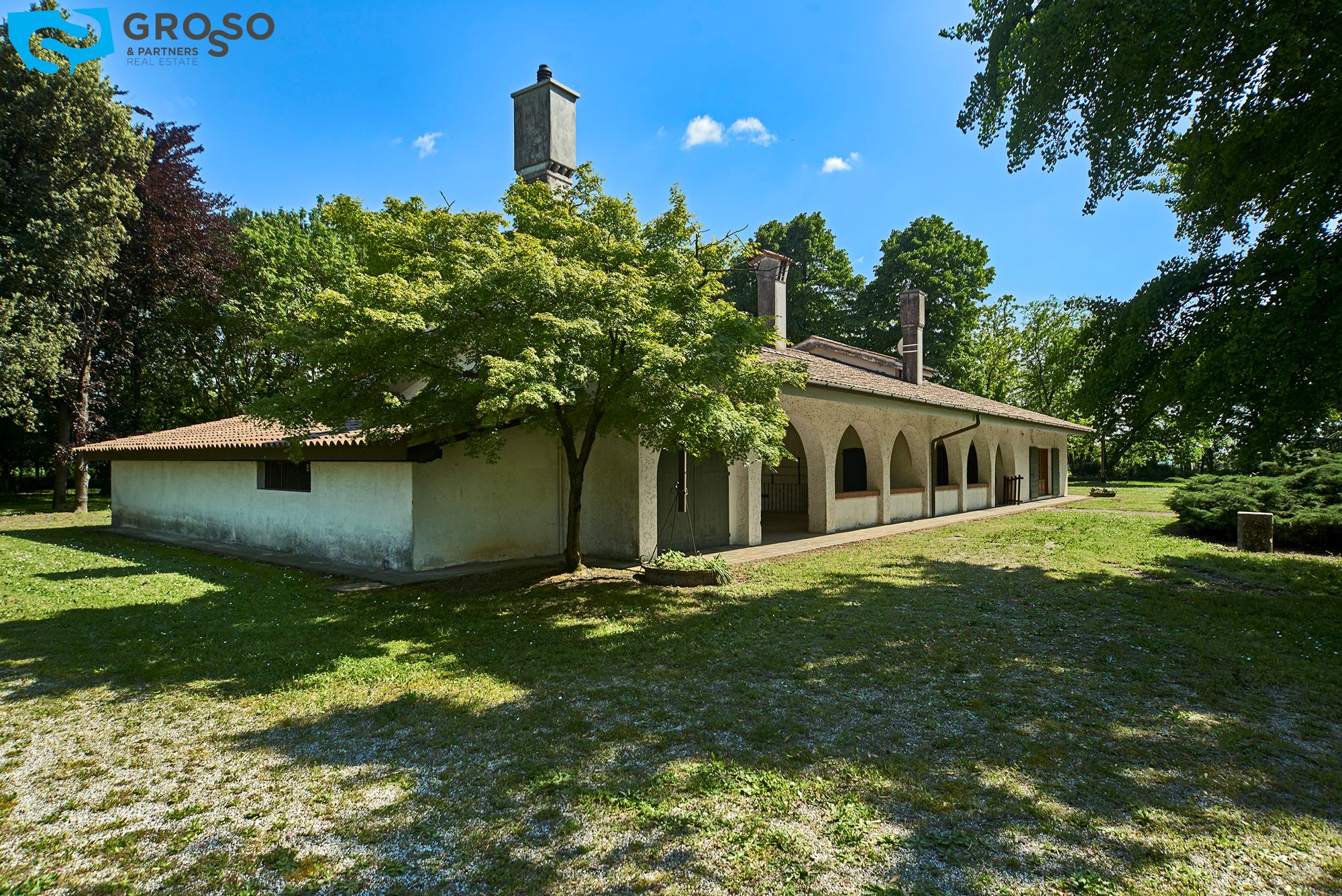 Portico esterno di mq 71, garage di mq 15 e due magazzini di cui uno di mq 36. Scoperto privato di mq 6500.