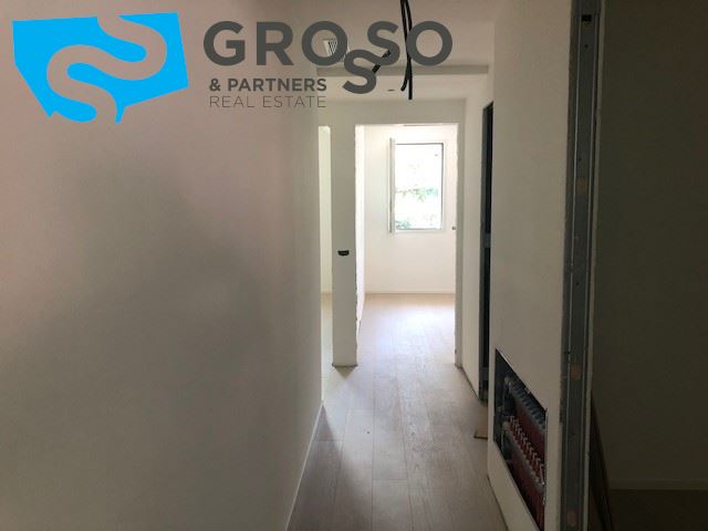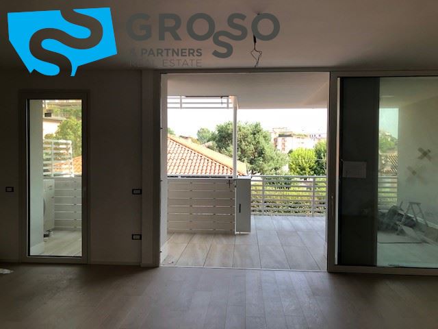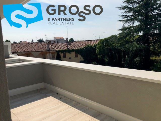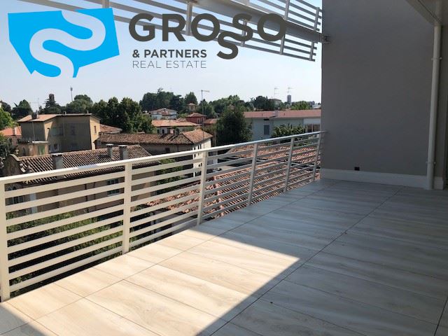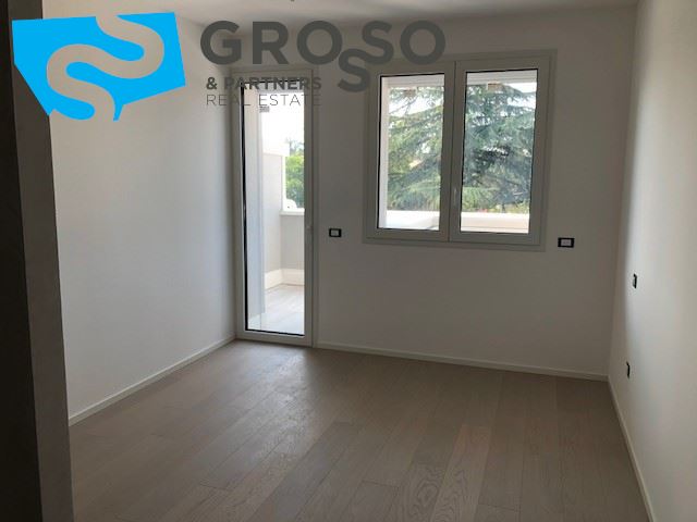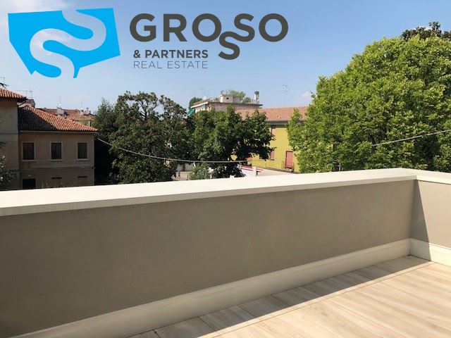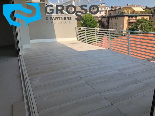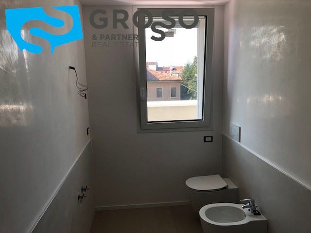 Treviso, immediato fuori mura in contesto di nuova realizzazione, appartamento al piano primo con ascensore cosi disposto: ingresso su soggiorno con zona pranzo e cucina a vista di mq 40, terrazza abitabile, tre camere di cui due matrimoniali e una singola, due bagni e un ripostiglio.