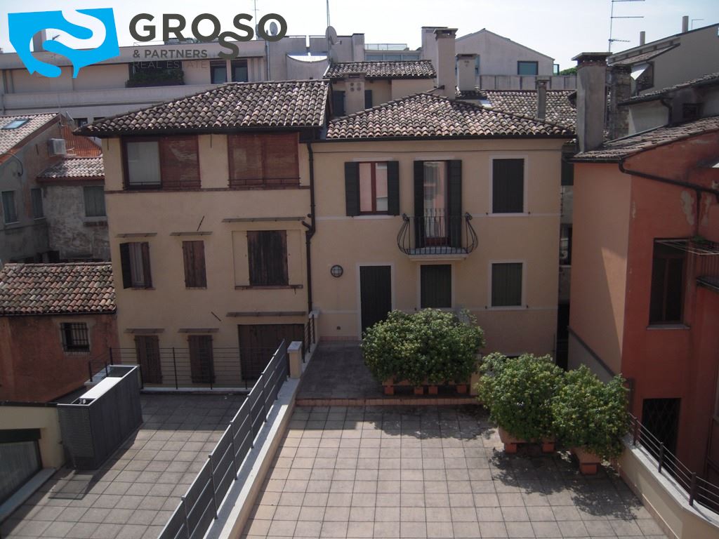 Treviso vicinanze Duomo, appartamento piano terzo ed ultimo su palazzo signorile completamente ristrutturato, composto da ampio soggiorno con terrazza, cucina separata, 3 camere di cui due matrimoniali e una singola, 2 bagni, magazzino.