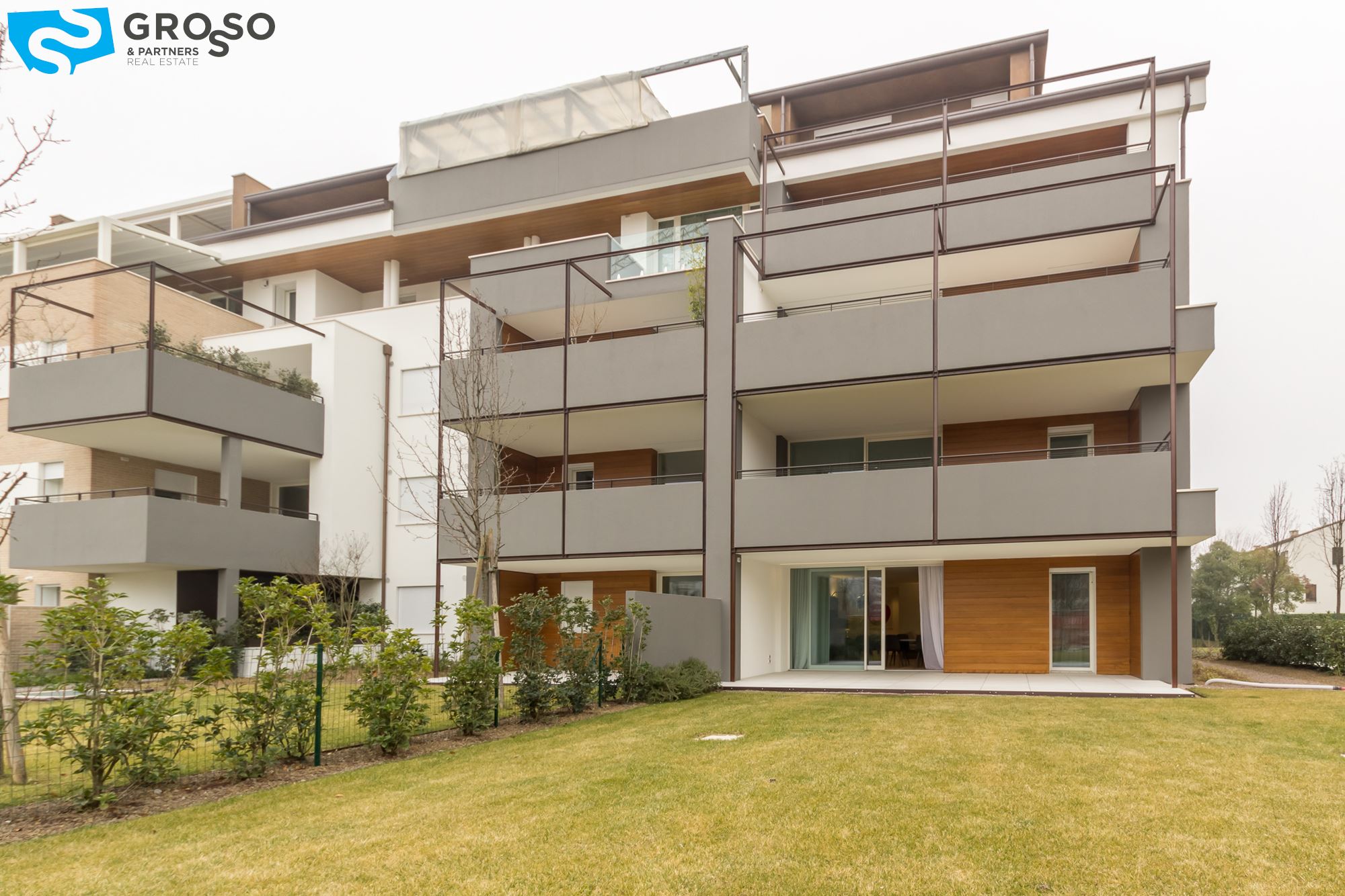 Treviso immediato fuori mura in residence di nuova costruzione, appartamento in contesto moderno al piano primo composto da ingresso con soggiorno zona pranzo e cucina a vista, tre camere di cui una matrimoniale e due singole, due bagni e una lavanderia.