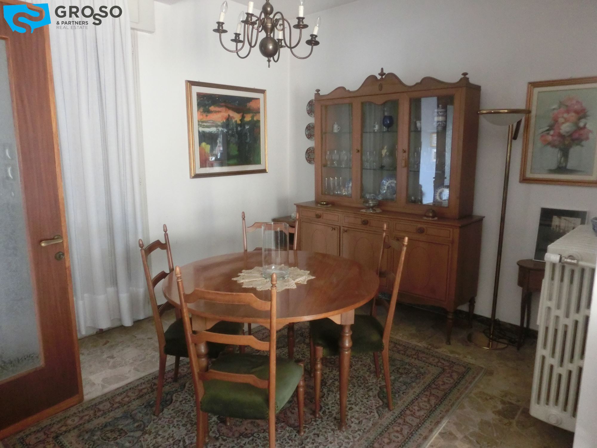 Treviso laterale di Via Montello, appartamento al 5° ed ultimo piano di mq 135 cosi composto: Ingresso soggiorno con zona pranzo e terrazza vivibile, cucina separata abitabile con terrazza verandata, ulteriore terrazza, 2 camere matrimoniali ed 1 singola, bagno con vasca, garage singolo al piano terra, riscaldamento centralizzato con contaore, spese condominiali comprensive di amministratore, riscaldamento, ascensore e pulizia scale.