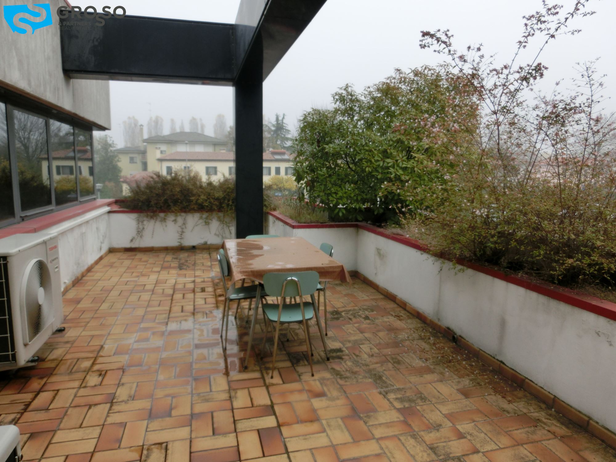 Treviso, zona fiera, in stabile fronte strada, ottimo contesto commerciale e posizione di forte visibilità, ufficio di mq 220 commerciali circa, composto di 5 locali, 2 bagni ed un'ampia terrazza. Di pertinenza dell'ufficio vi sono 8 posti auto esclusivi in parcheggio chiuso. Disponibilità di arredo eventualmente concordabile.